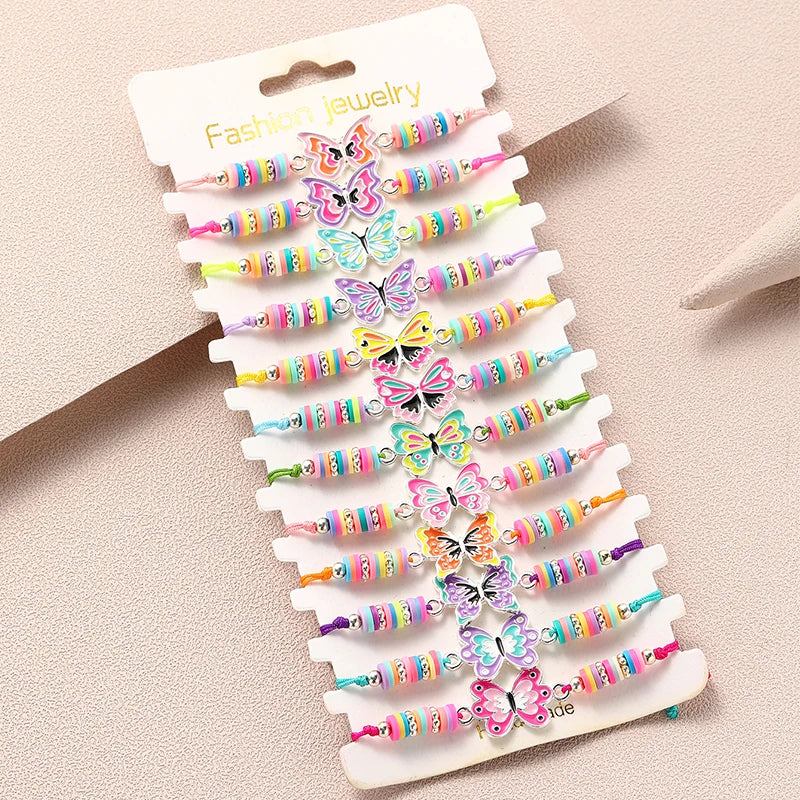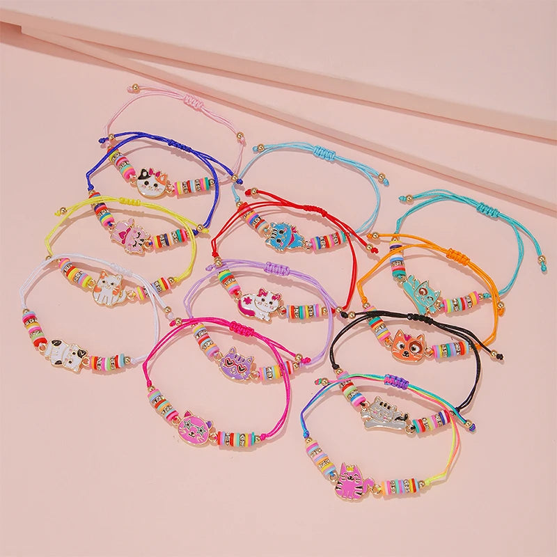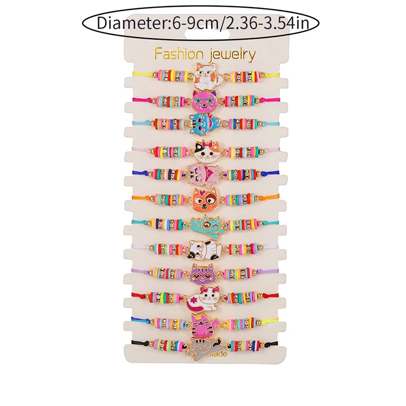 12Pcs/set Cute Cat Colorful Rope Rainbow Unicorn Charm Bracelets For Women Girls Kids Birthday Christmas Jewelry Friendship Gift