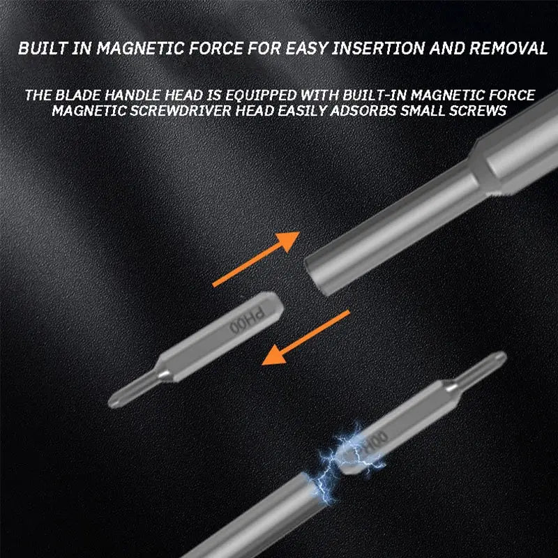 Built-in magnetic force in the head of the handle, the magnetic bit can easily absorb small screws