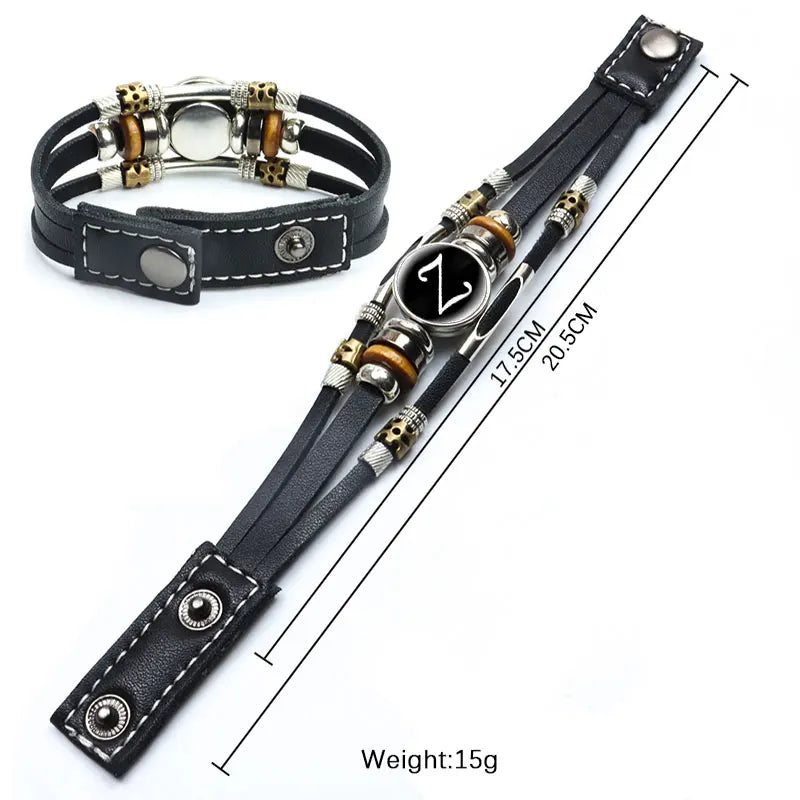 - Item Type : Artistic Letter A-Z Leather Bracelet