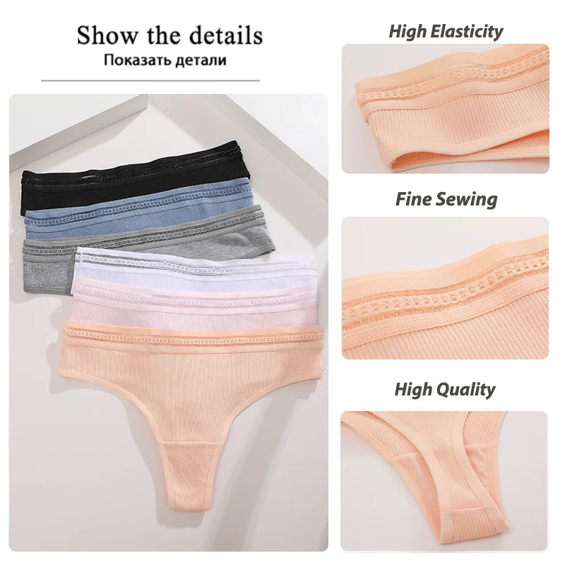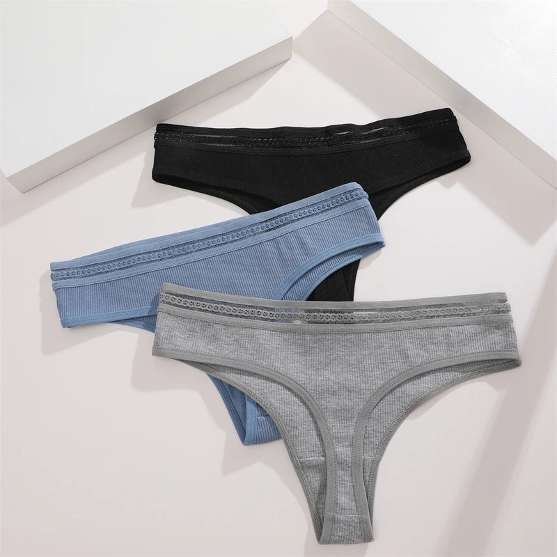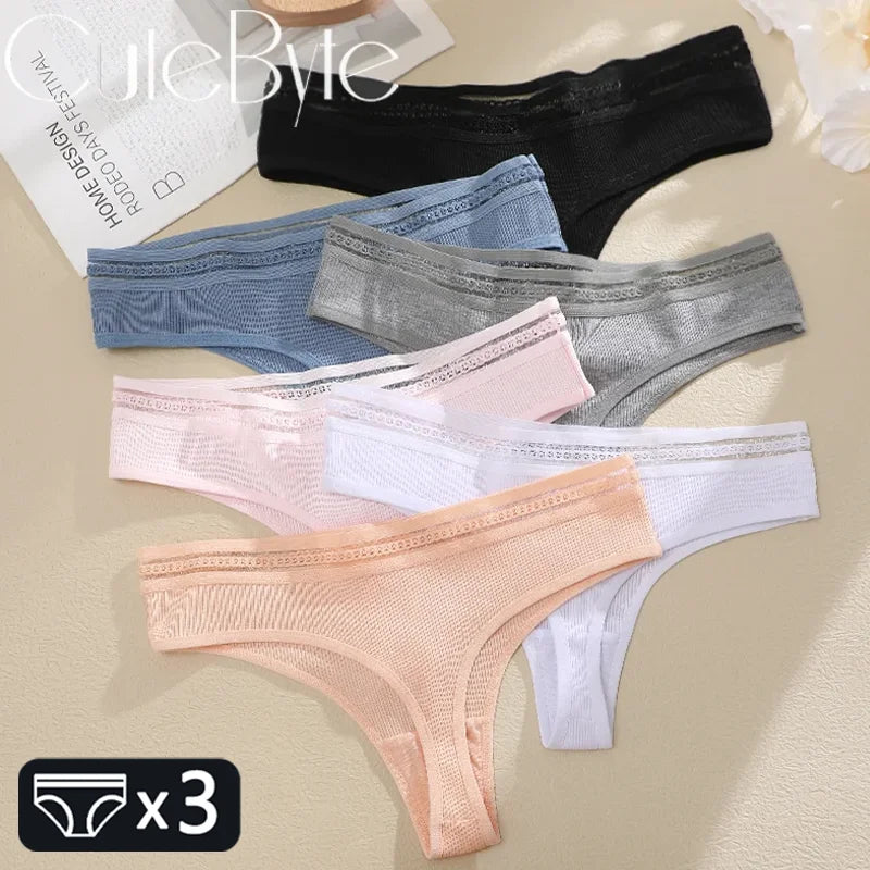 3pcs Seamless Cotton Thongs Panties Womens Sport Underwear