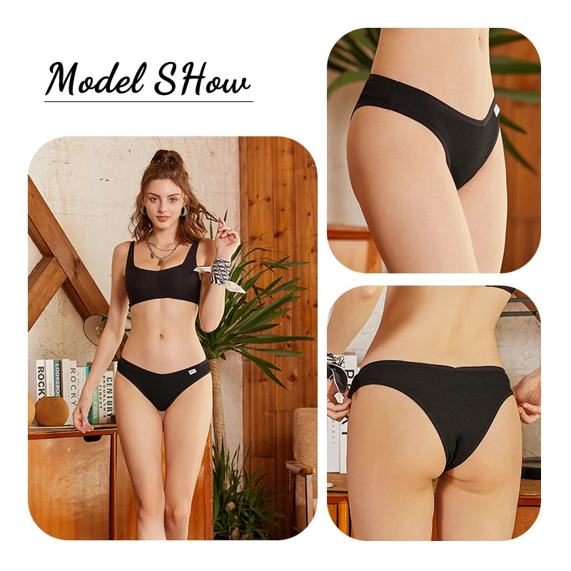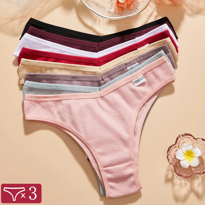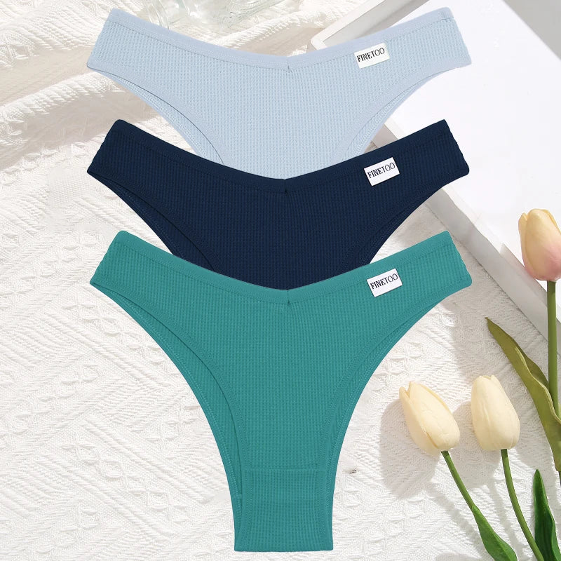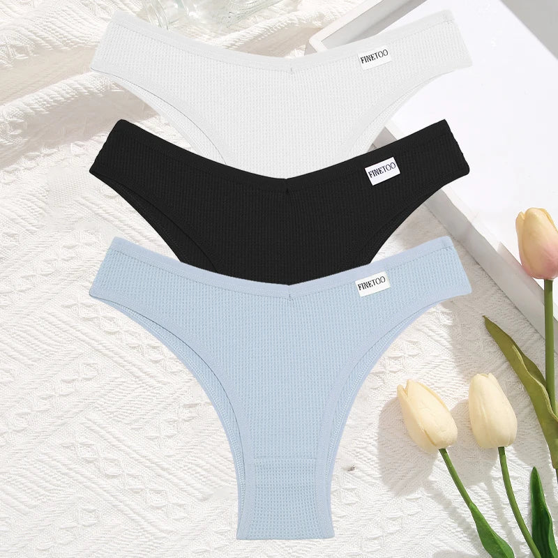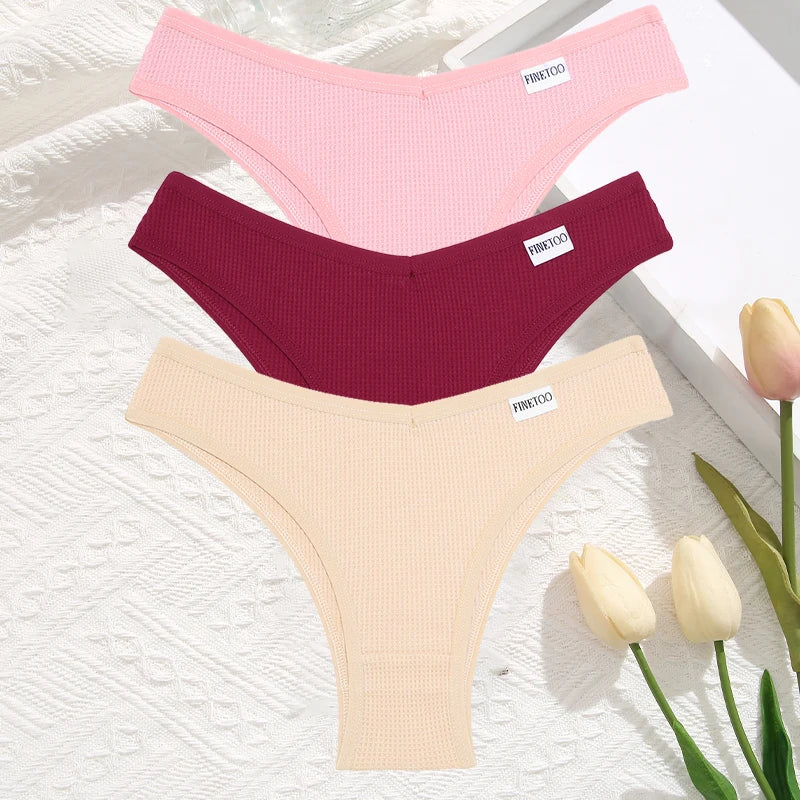 3pcs Womens Sexy Waffle Plaid Cotton Brazilian Panties Low Waist Underwear