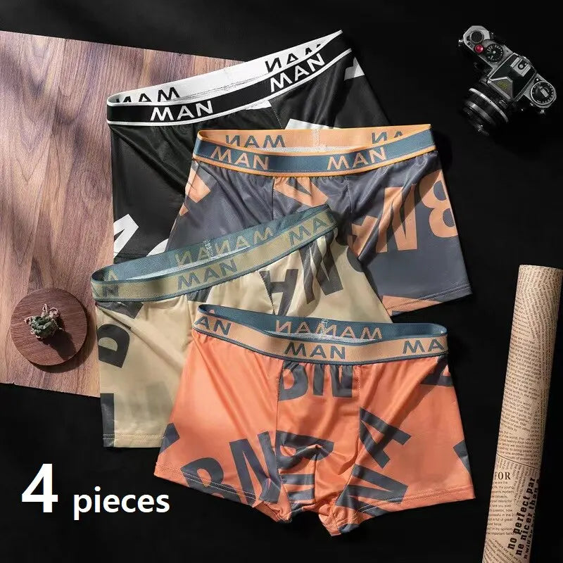 4pcs Mens Boxers Shorts Underpants Underwear Sexy Soft Ice Silky