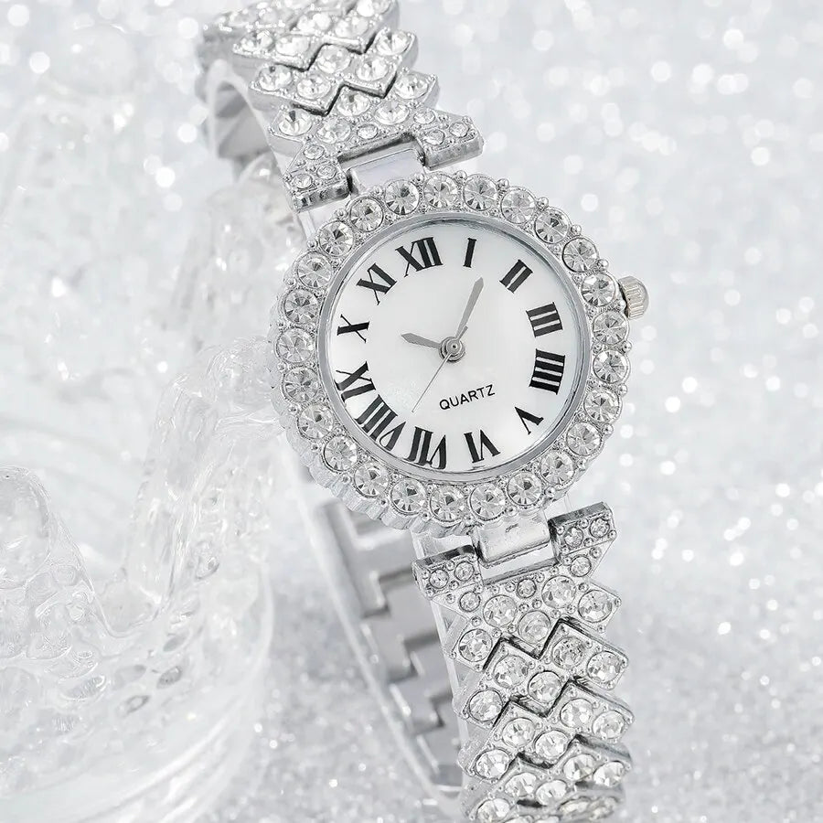 • Rhinestone-encrusted :The rhinestone-encrusted design of the watch and jewelry set adds a touch of glamour and sparkle to any look.