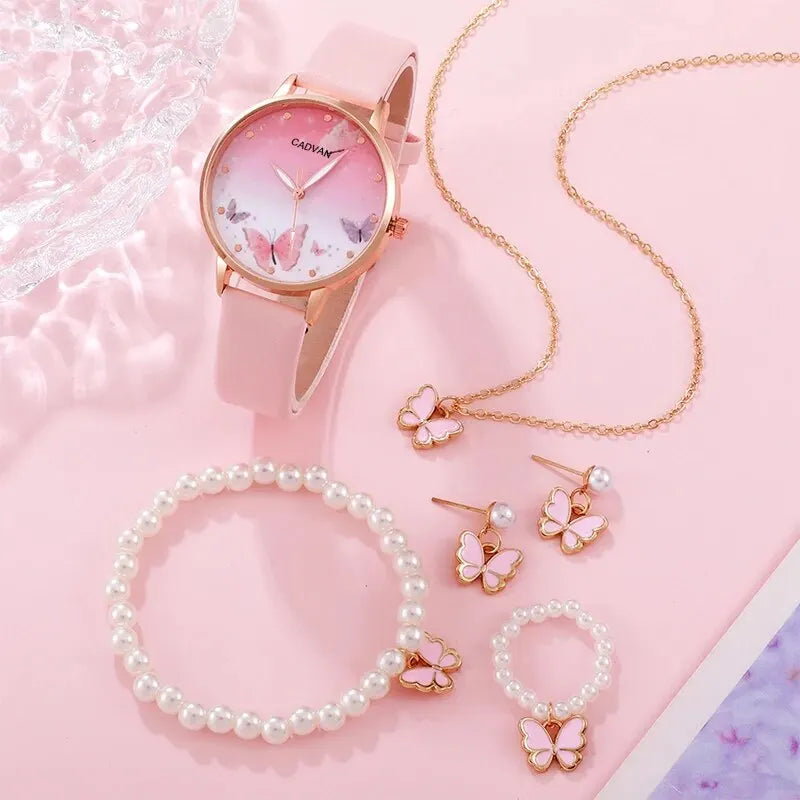 6PCS Set Women Fashion Quartz Watch Jwelry Set