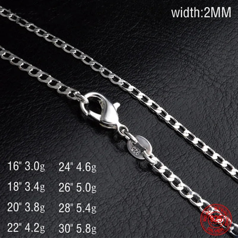 925 Sterling Silver 2MM Flat Necklace Chain For Women Men