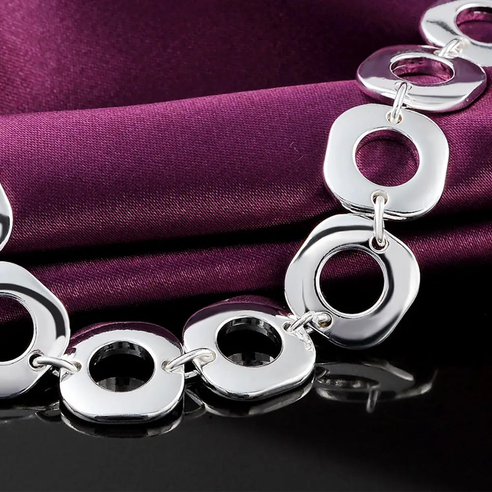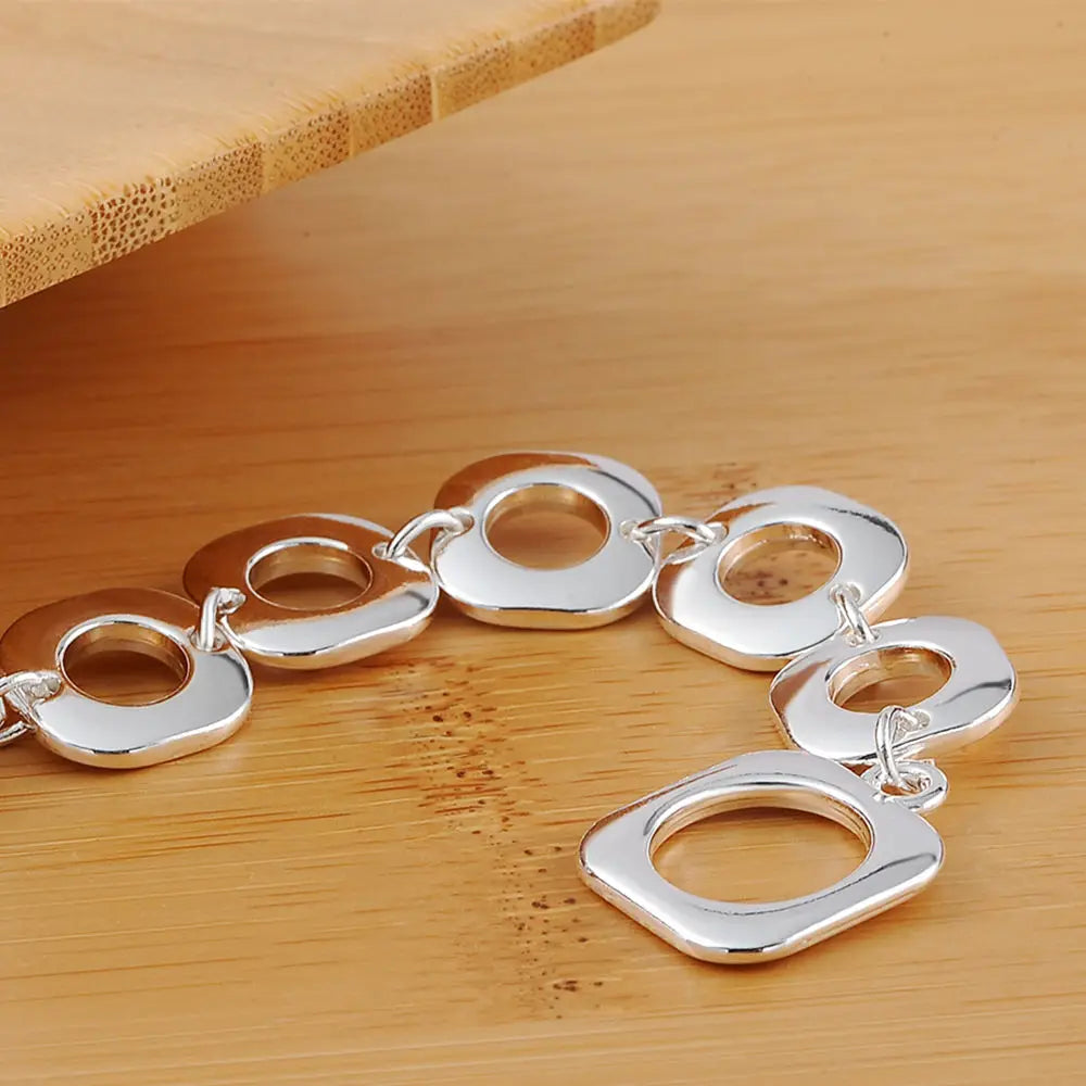 925 Sterling Silver Bracelets Classic Fashion Square Chain for Woman