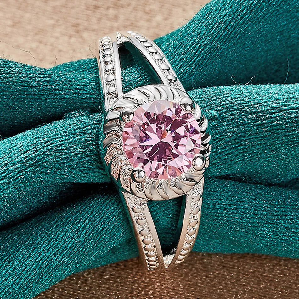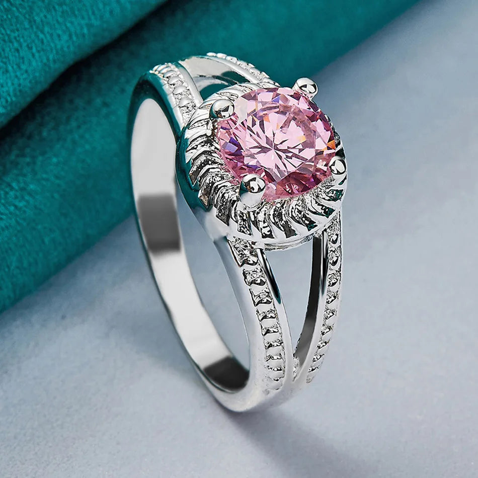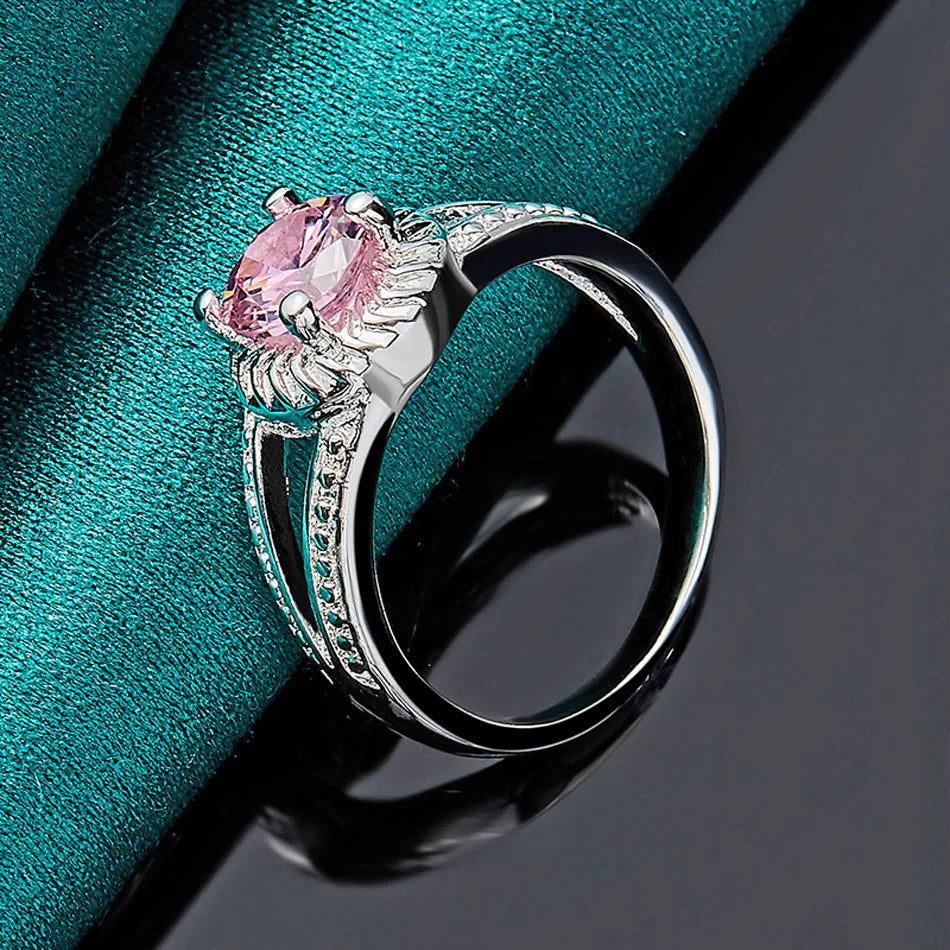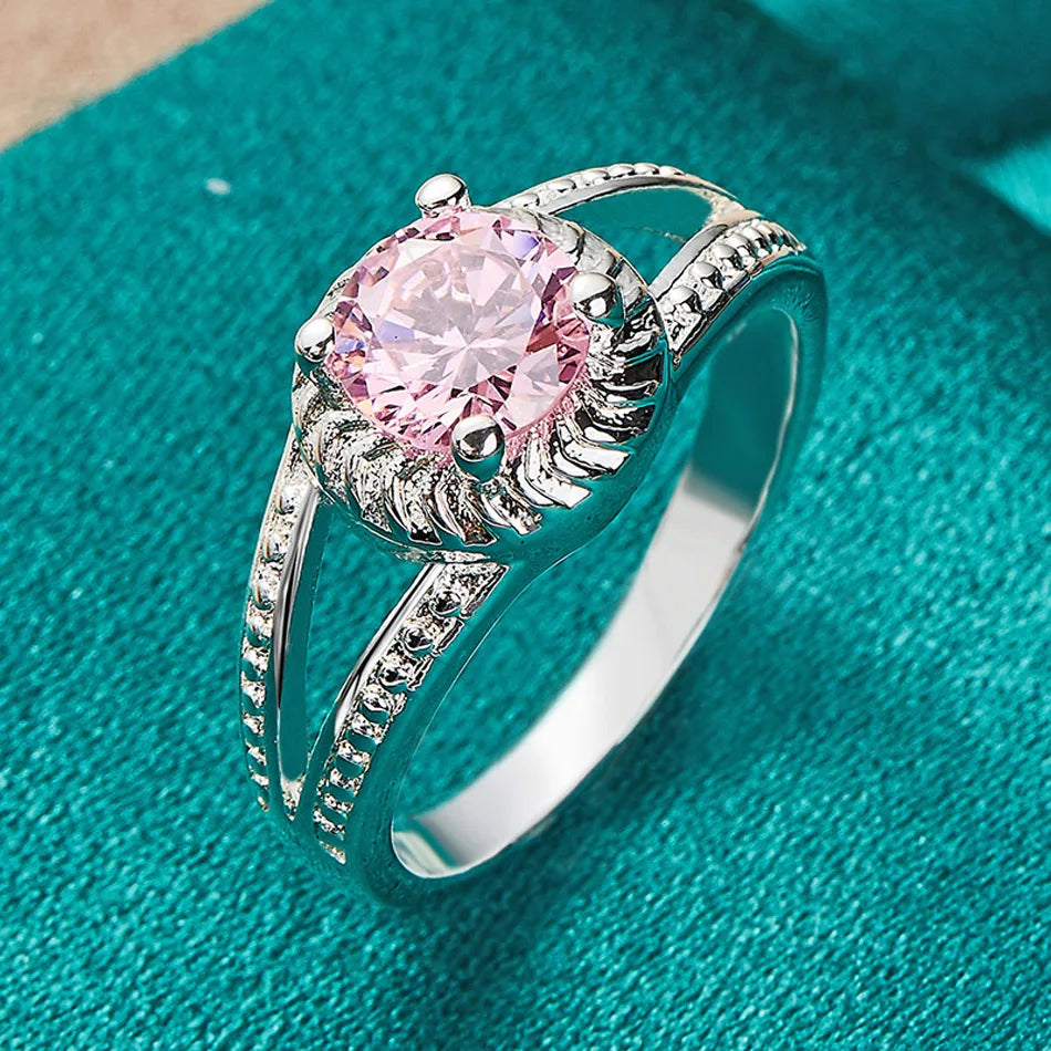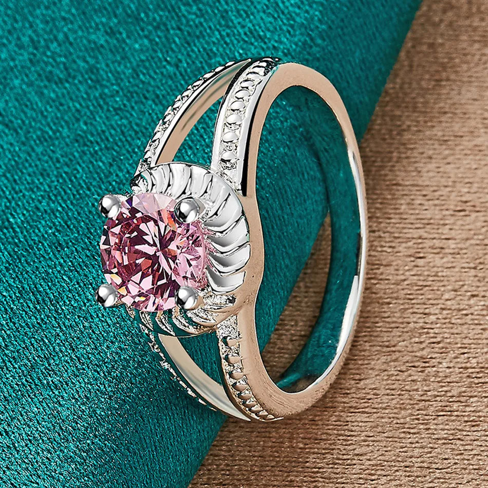 925 Sterling Silver Charm Pink Zircon Ring For Women