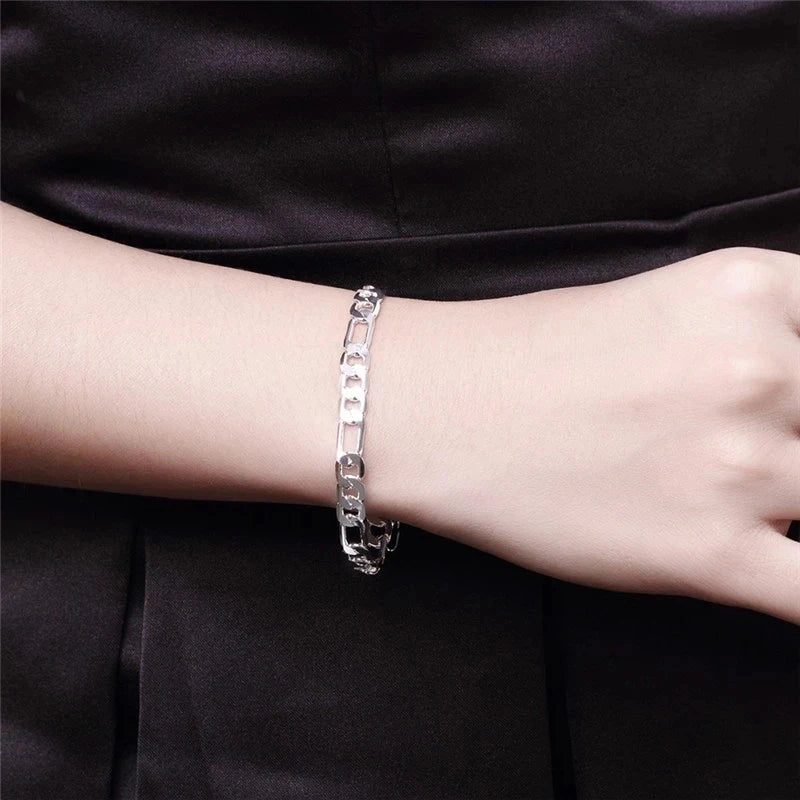 925 Sterling Silver Classic 8mm Geometric chain necklace bracelet Jewelry set for woman Men Party wedding fine fashion gifts