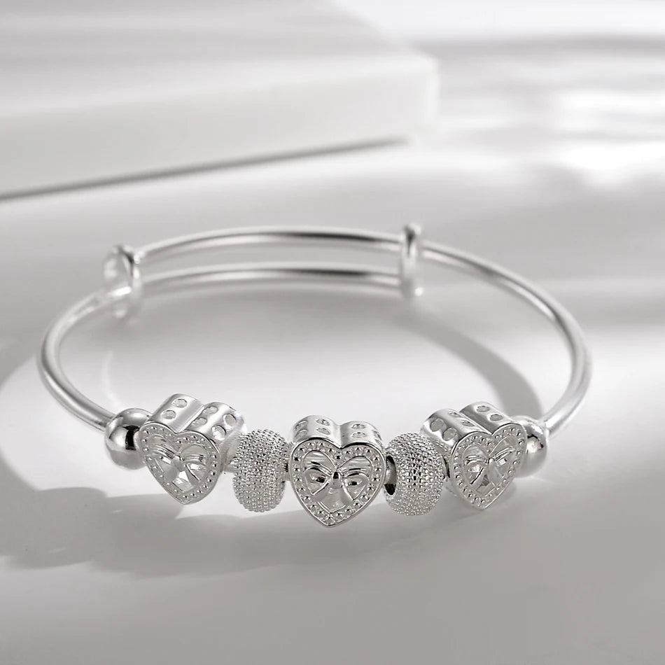 925 Sterling Silver Cute Woman Heart Bangles for Lady Bracelets