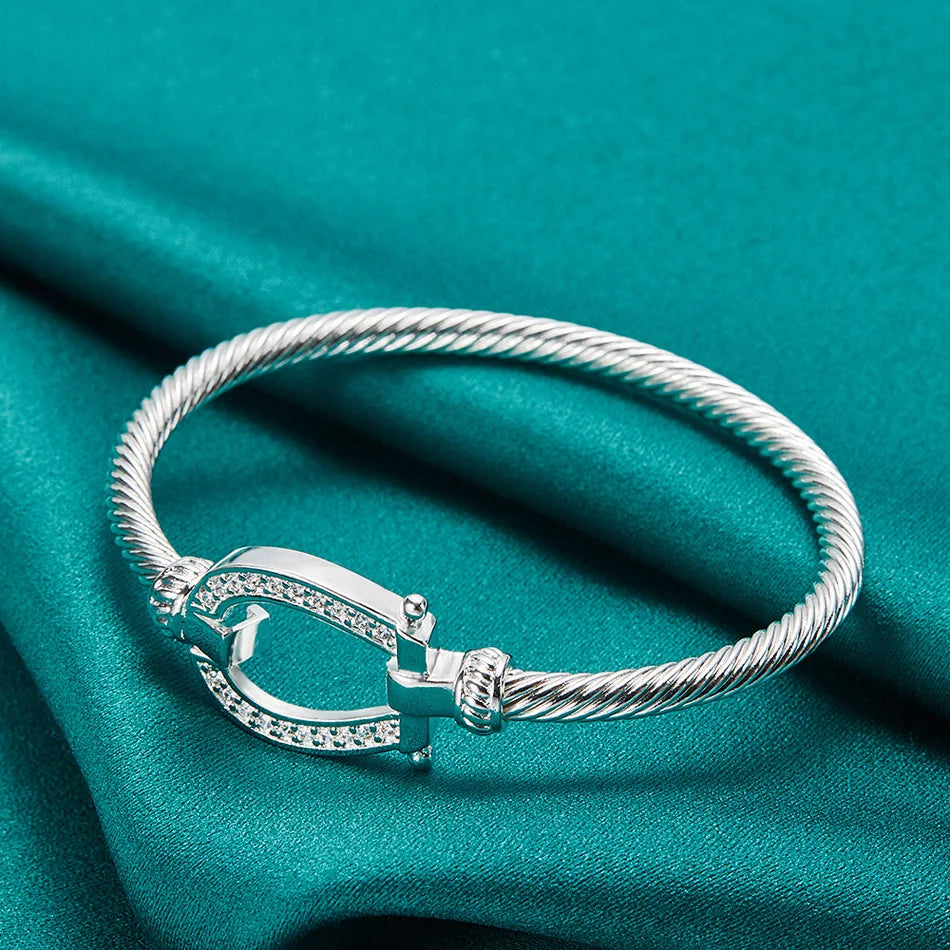925 Sterling Silver Horseshoe Buckle Bangle For Women