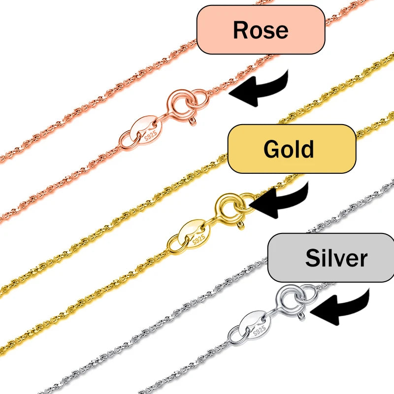 925 Sterling Silver Necklace Water Wave Chain Womens Necklace