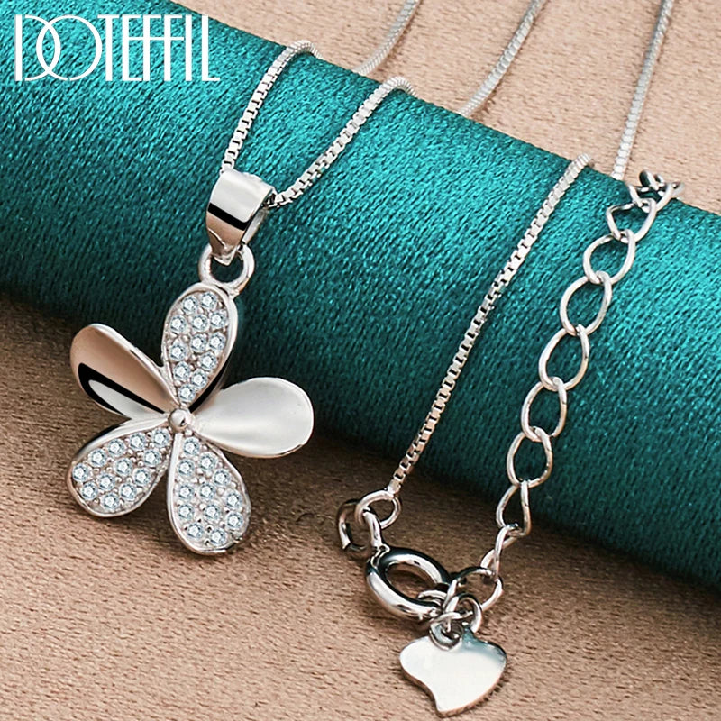 925 Sterling Silver Petal Pendant Necklace Full AAA Zircon Chain For Woman