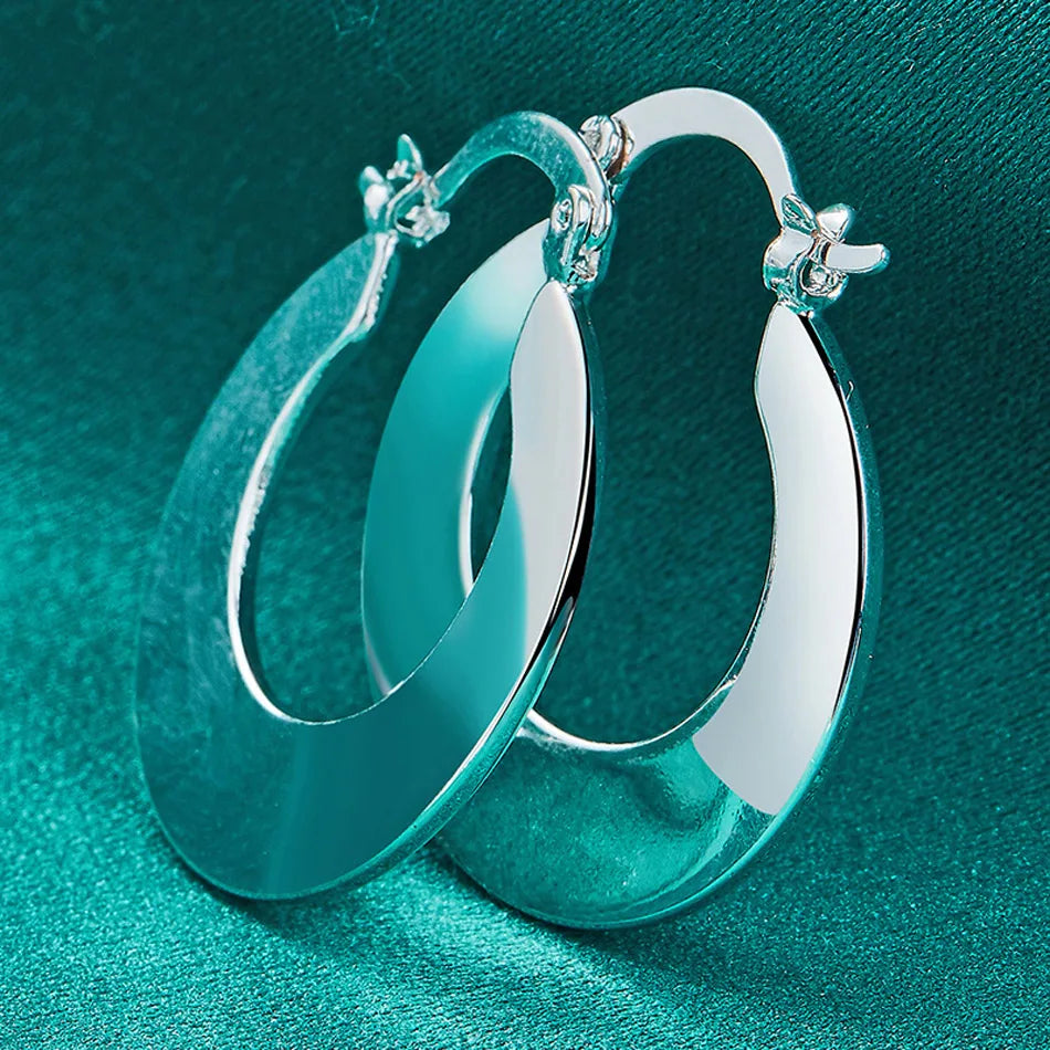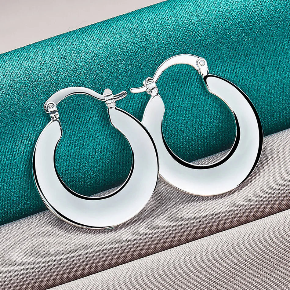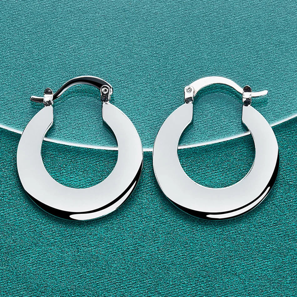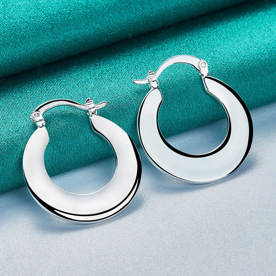 925 Sterling Silver Smooth Flat Round Earrings For Women Wedding Party Fashion Charm Jewelry