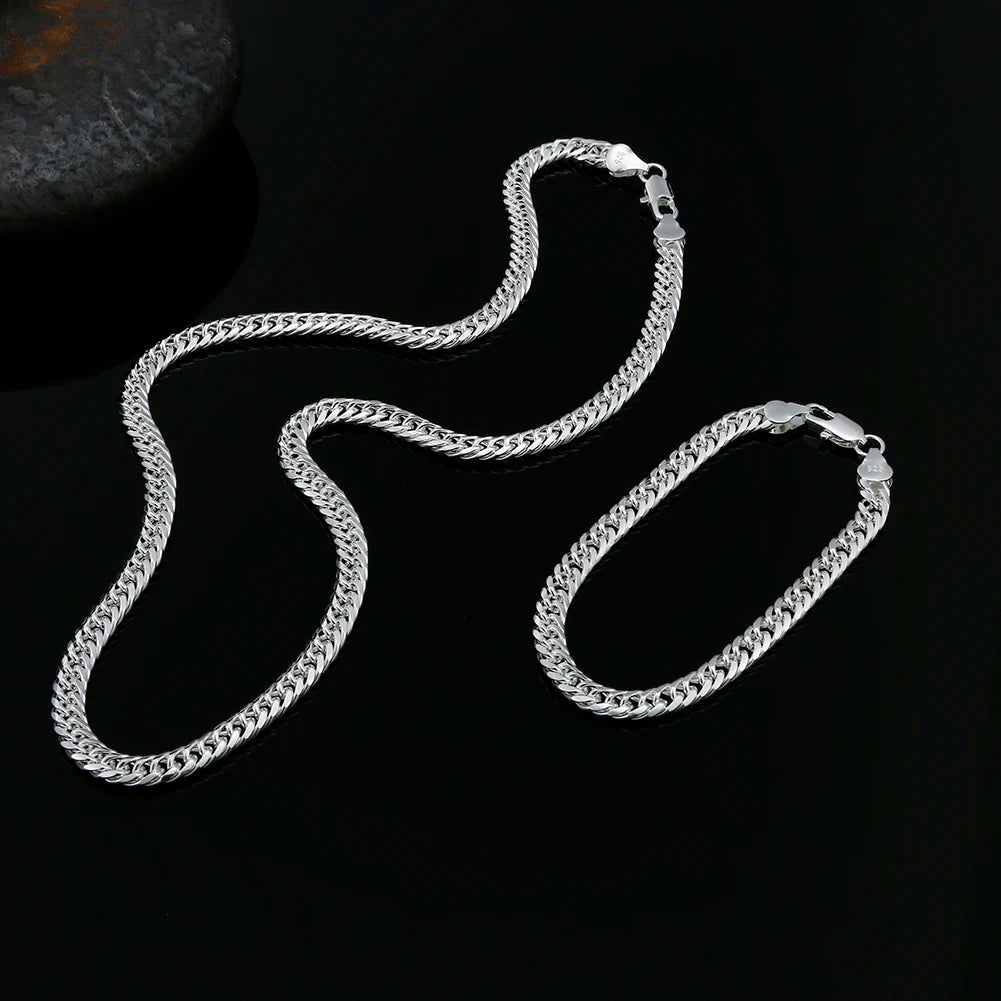 925 Sterling Silver Unisex 6MM Geometric Chain Bracelets Neckalces