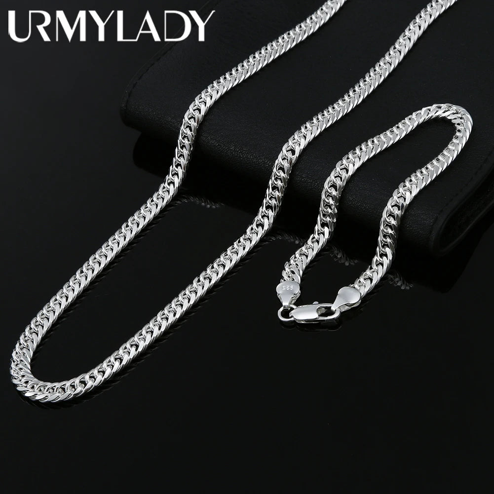 Fashion original brand 925 Sterling Silver man 6MM geometric chain bracelets neckalces for women Party wedding jewelry sets