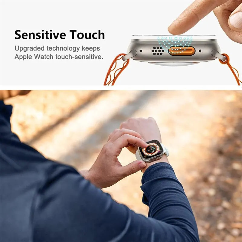 • HD Tempered Glass Film :The tempered glass film ensures high-definition clarity, providing a crystal-clear view of your Apple Watch screen.