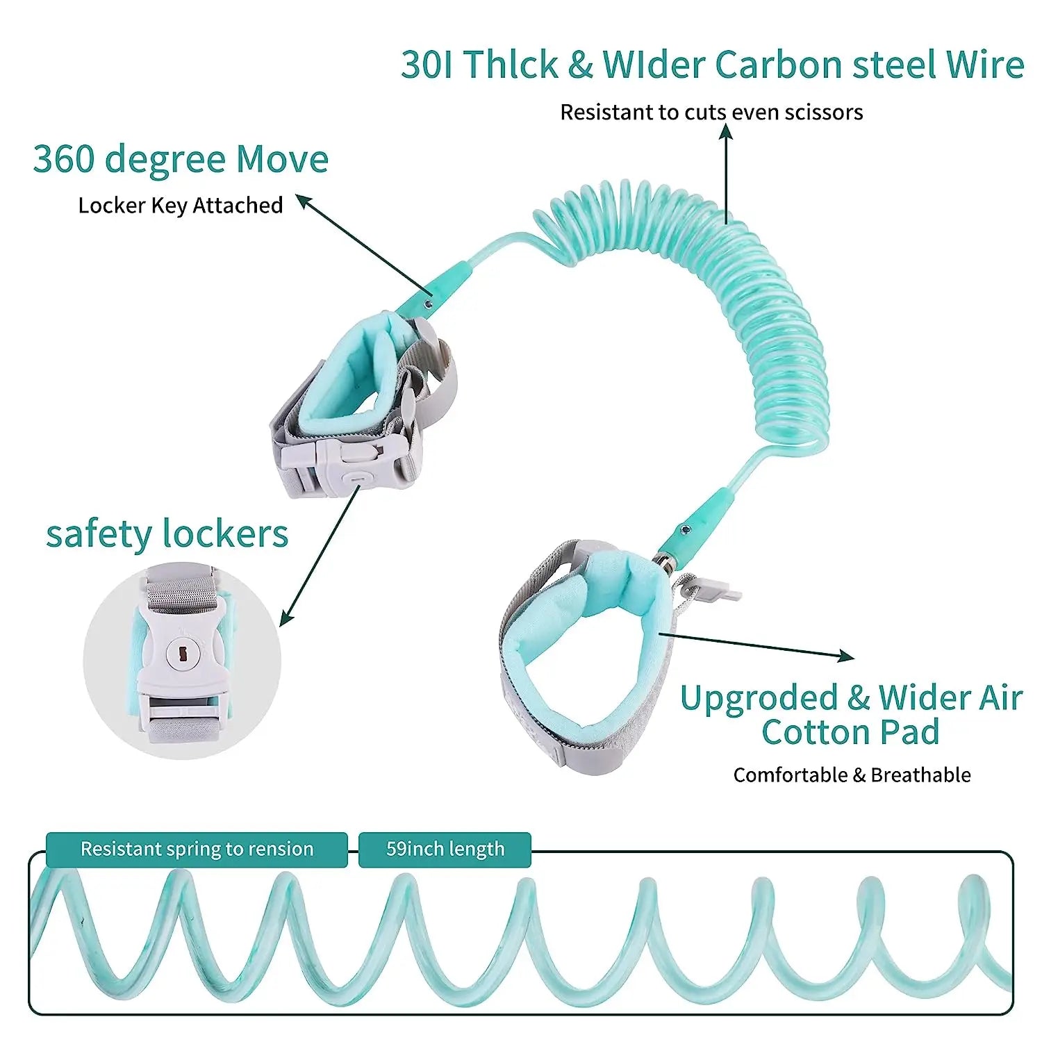 • Anti-Lost Wrist Link :The wrist link ensures that your child's wrist won't slip out of the leash, preventing them from getting lost or separated from you.