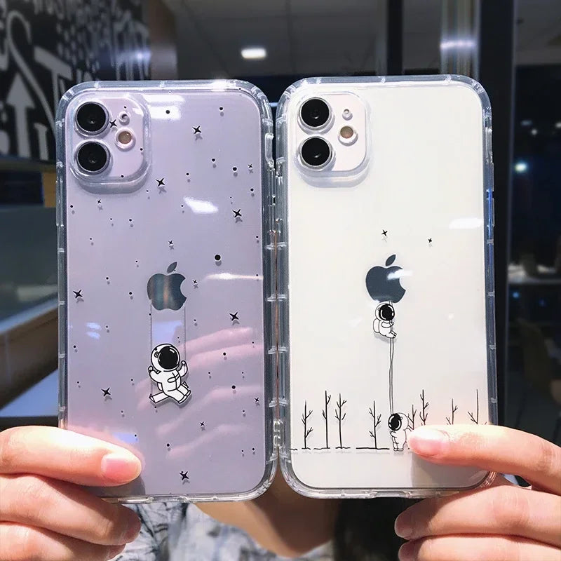 Cute Cartoon Astronaut Space Phone Case For iPhone 15 14 13 12 11 Pro Max Plus Mini Clear Soft TPU Shockproof Back Cover