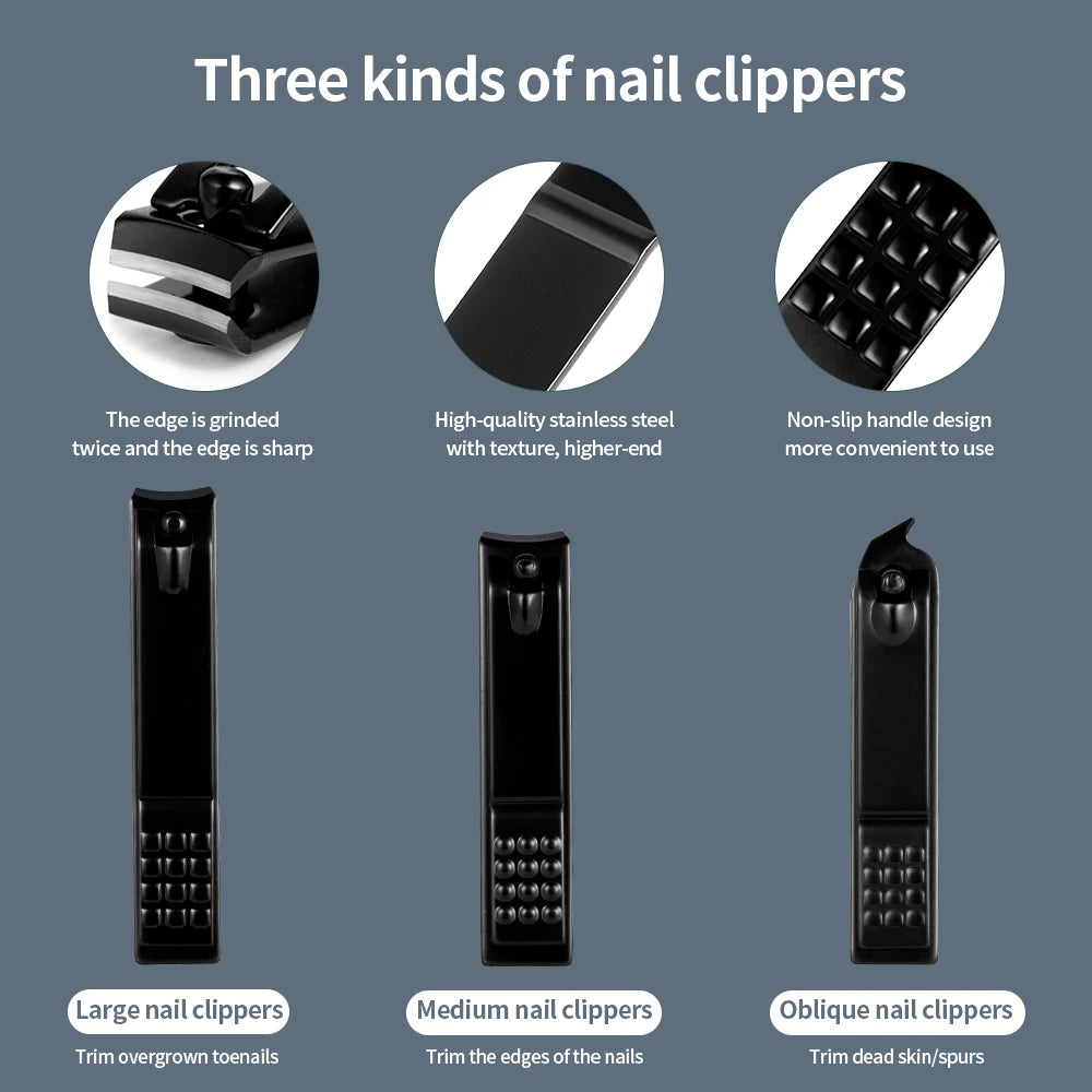 Black Nail Clipper Set Stainless Steel Manicure Nail Scissors Pedicure Kit