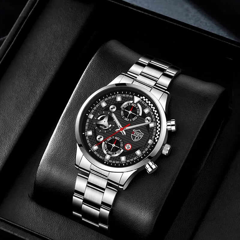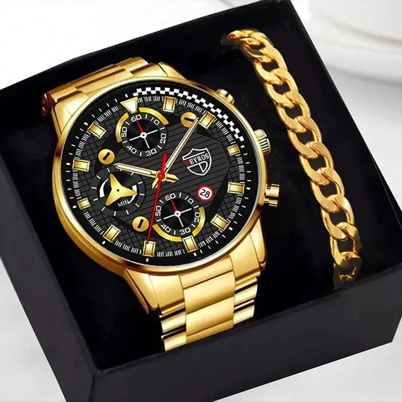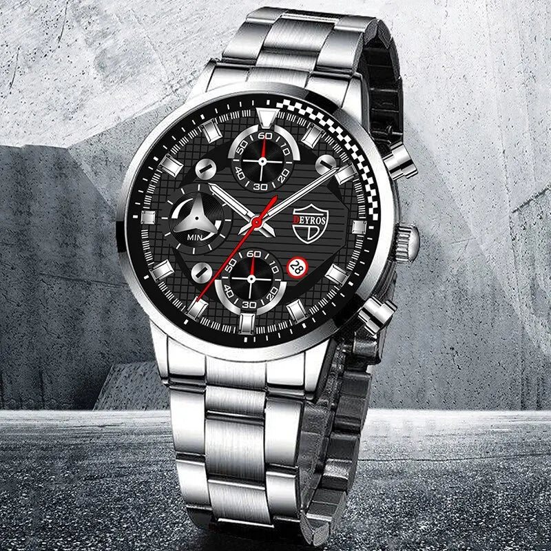 Deyros Mens Stainless Steel Quartz Watch Bracelet Set