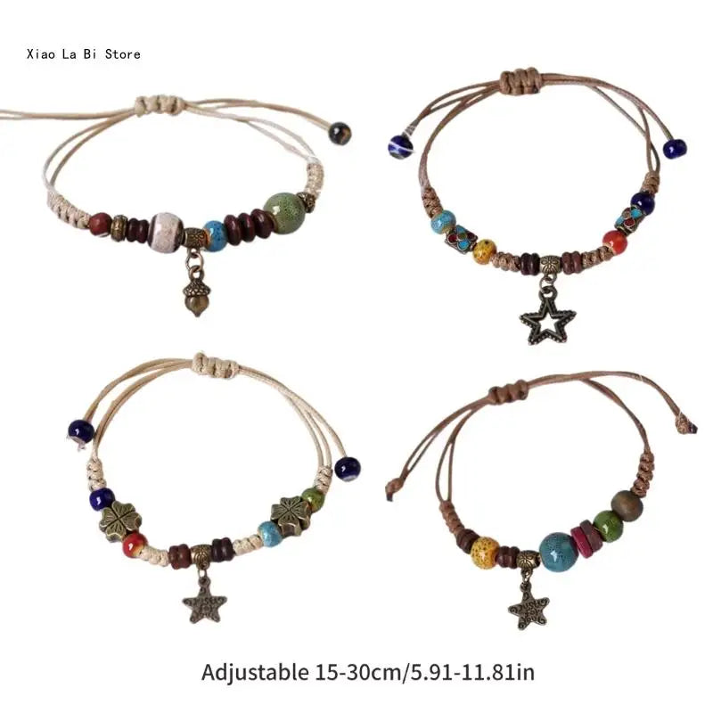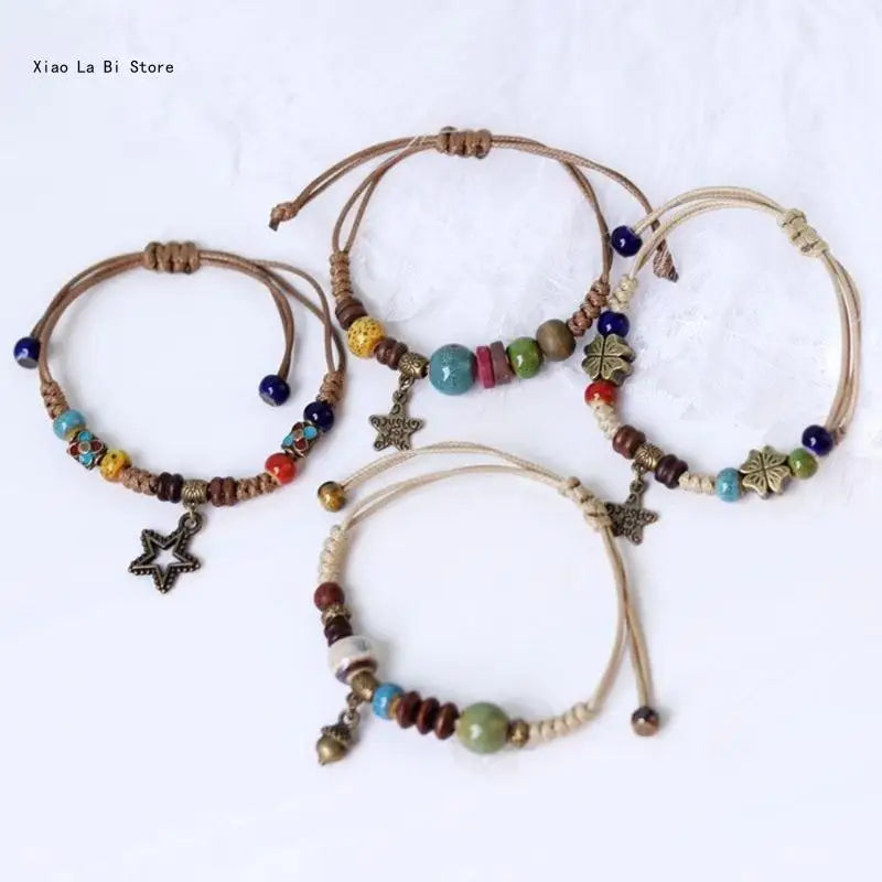 Fashionable Bracelet Ethnic Ceramic Beaded Bangles Woven Strings
