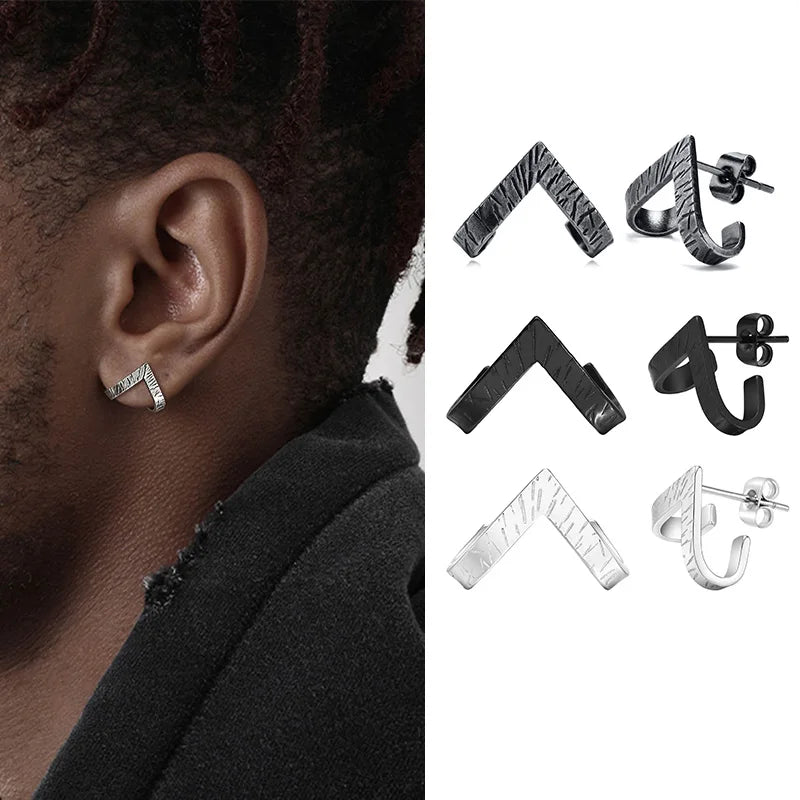 Geometric Stud Earring for Men Stainless Steel Triangle Wrap Earrings