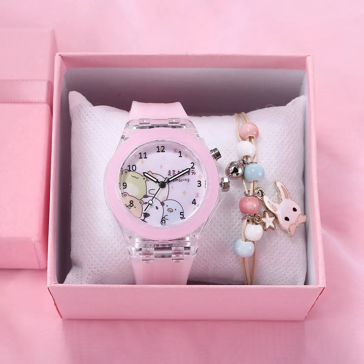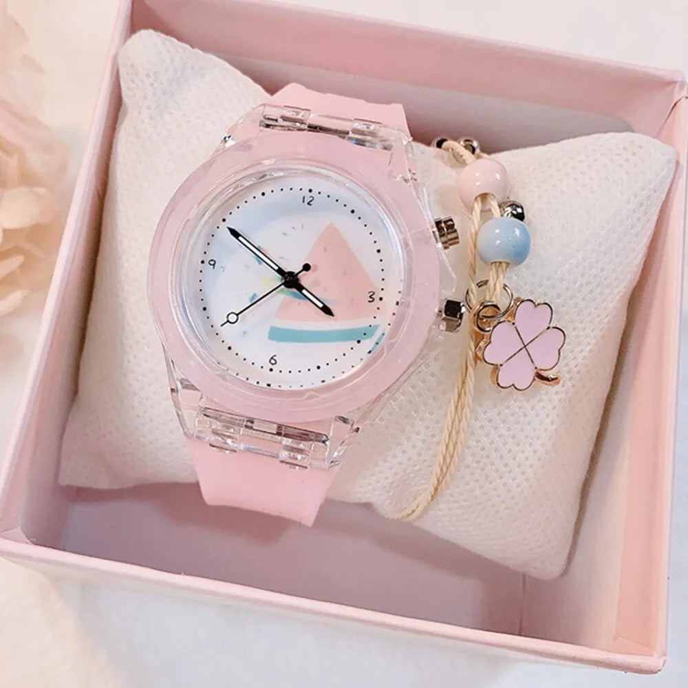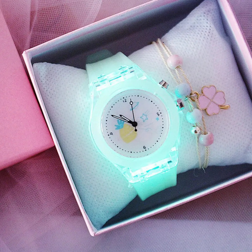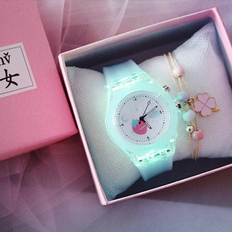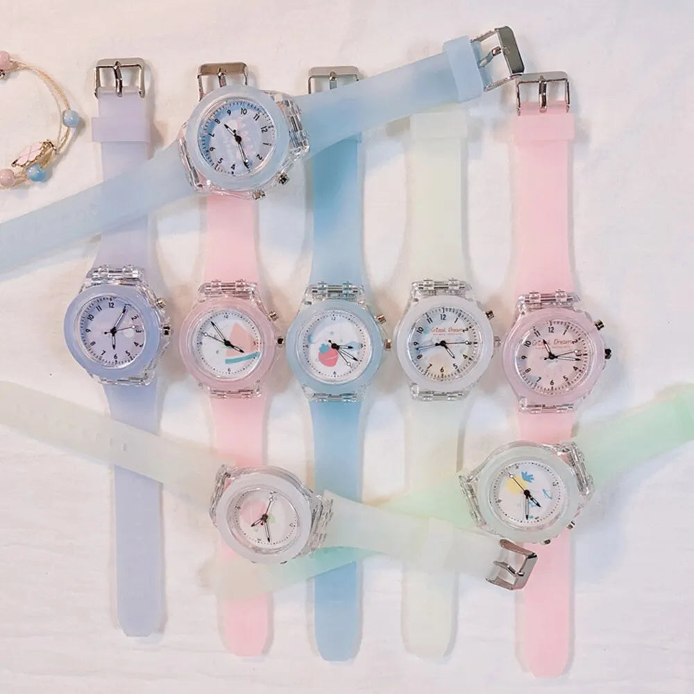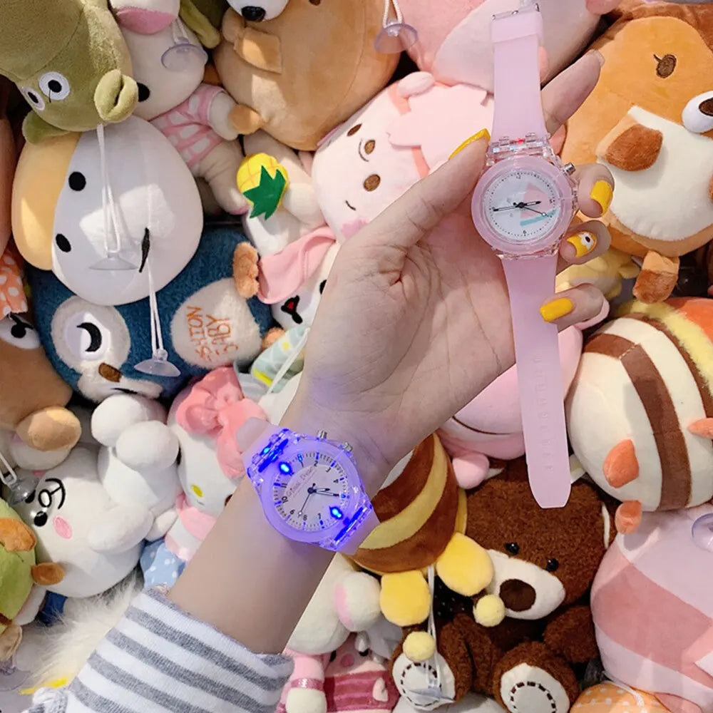 Girls Kids Children Luminous Student Colorful LED Light Quartz Watch