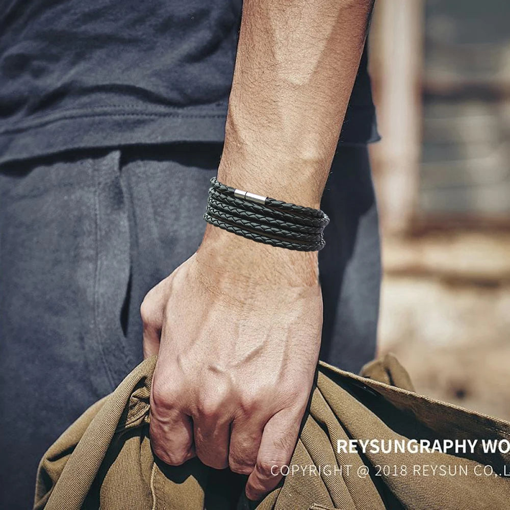Handmade Round Rope Turn Buckle Mens Leather Bracelet