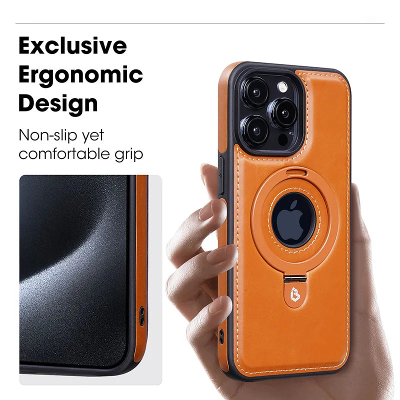 Hidden Ring Stand Leather Magnetic Macsafe Case for IPhone 15 14 13