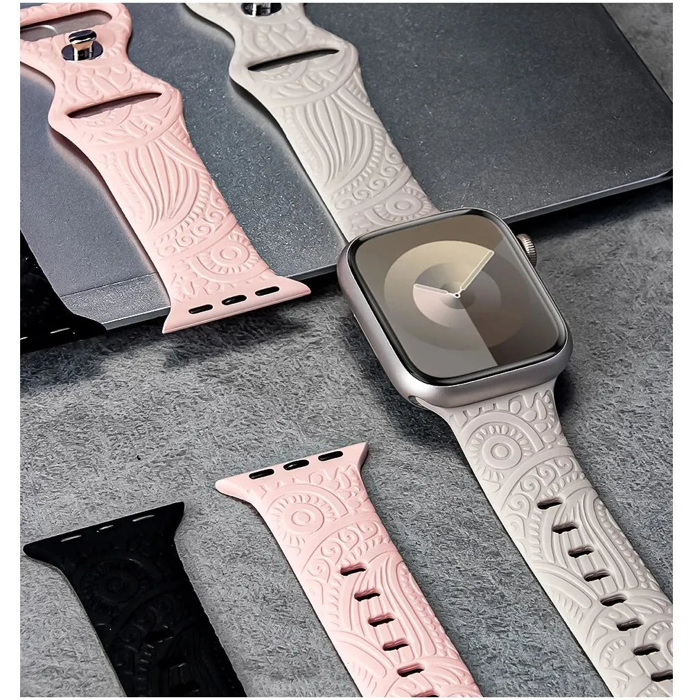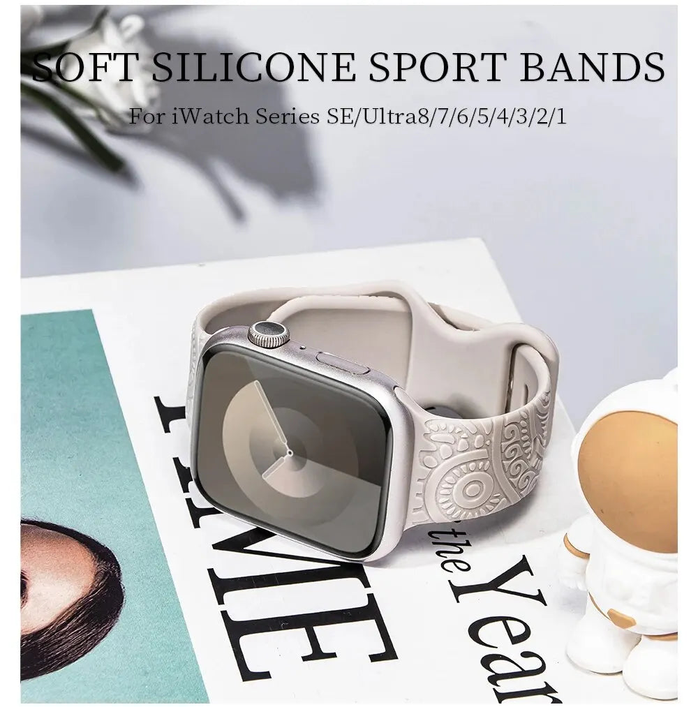 Hot Engraved Pattern Silicone Band For Apple Watch Iwatch