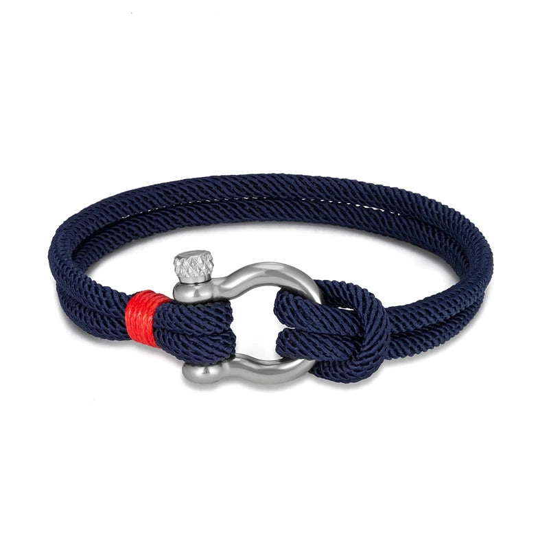 Mens Nautical Double Strand Shackle Clasp Survival Bracelet