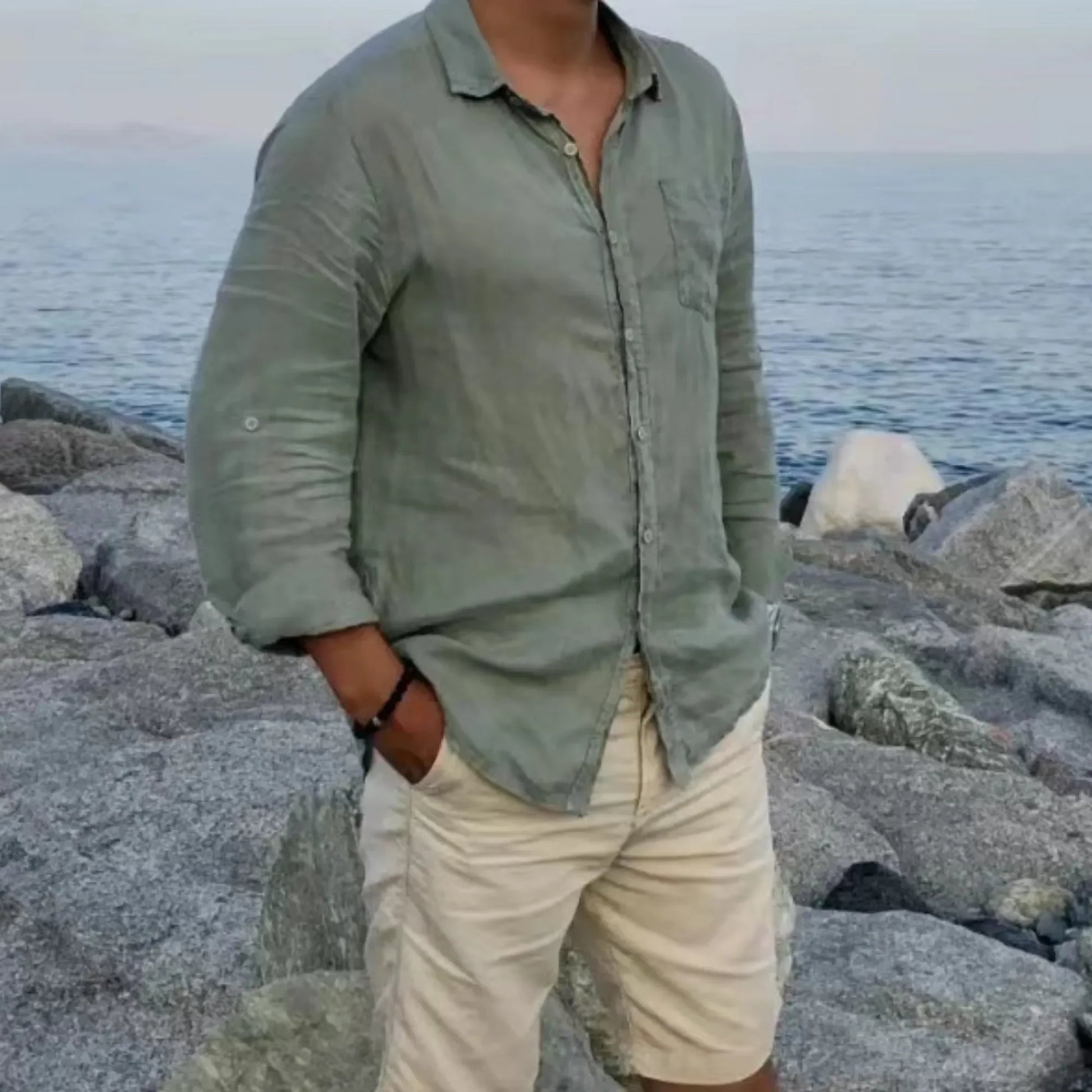 Name:Autumn New Men Plain Cotton And Linen-Blend Loose Lapels Long-Sleeved Casual Cardigan Beach Shirt
