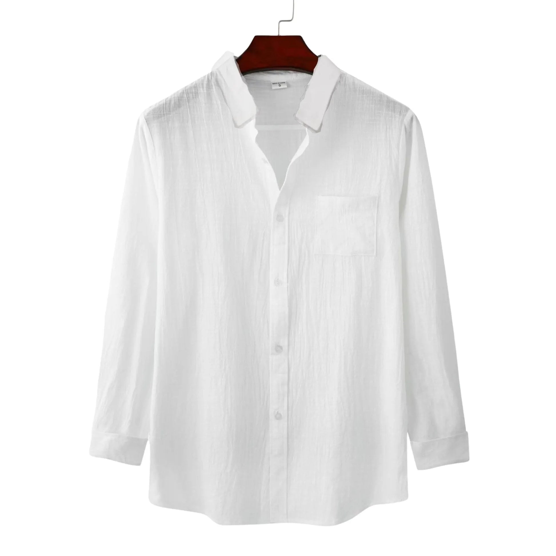 Mens Plain Cotton Linen Loose Lapels Long Sleeved Casual Shirts