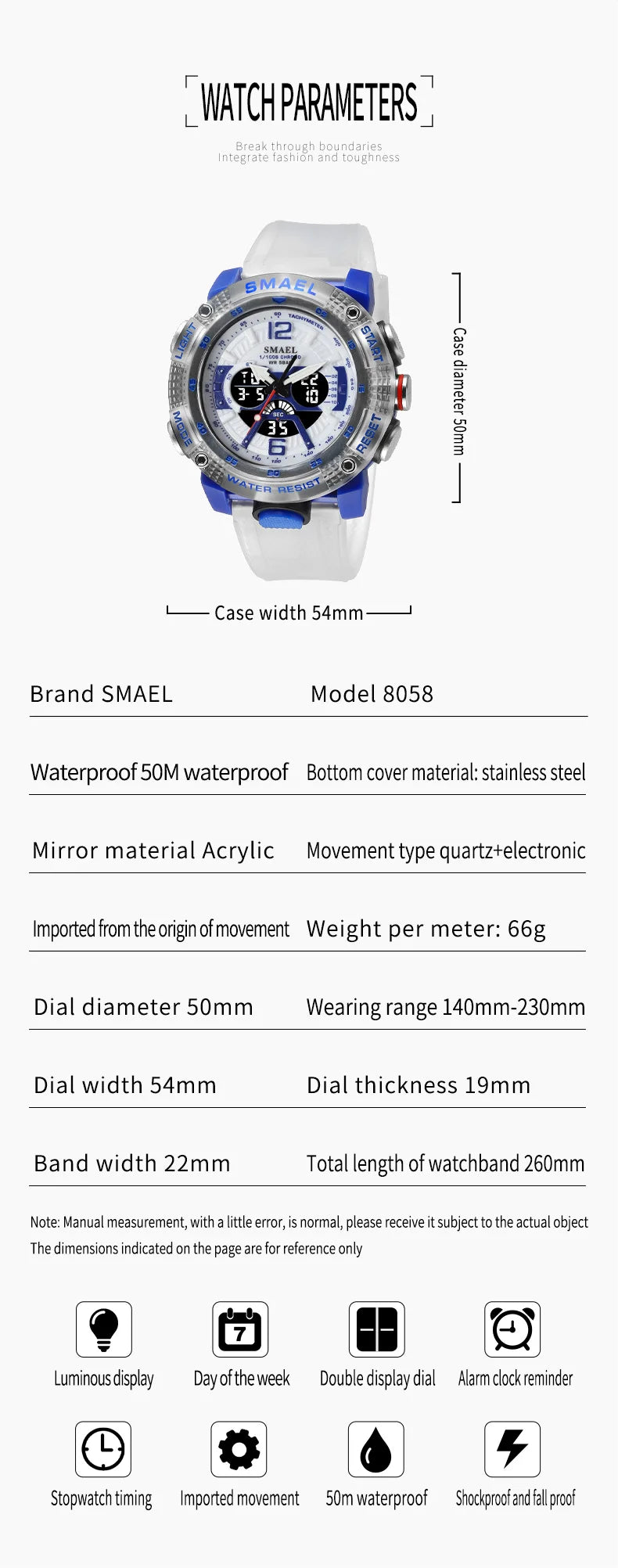 - Item: SMAEL Men Watches 50m Waterproof 8058