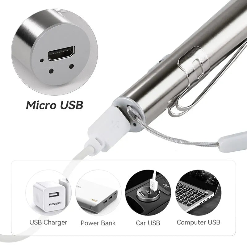 Mini Medical LED Pen Flashlight USB Rechargeable