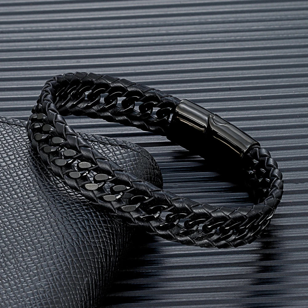 Punk Men Braided Woven Leather Bracelets for Friend Charm