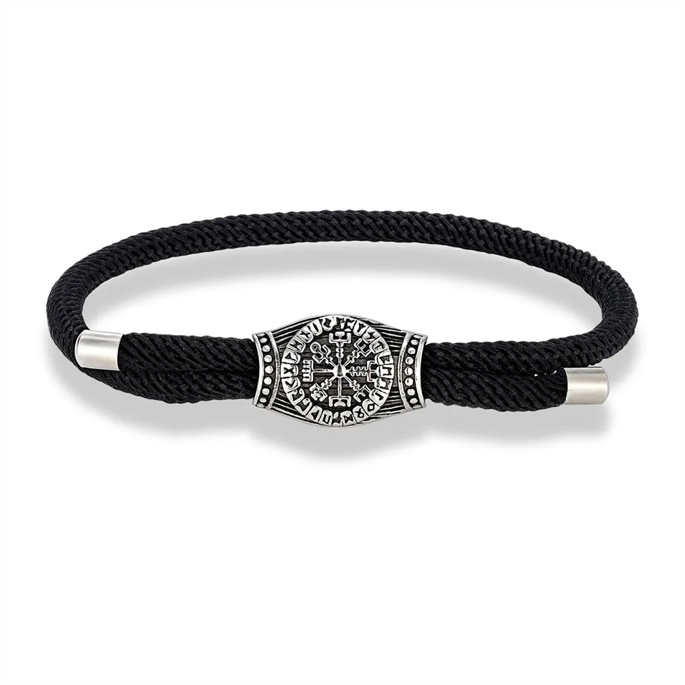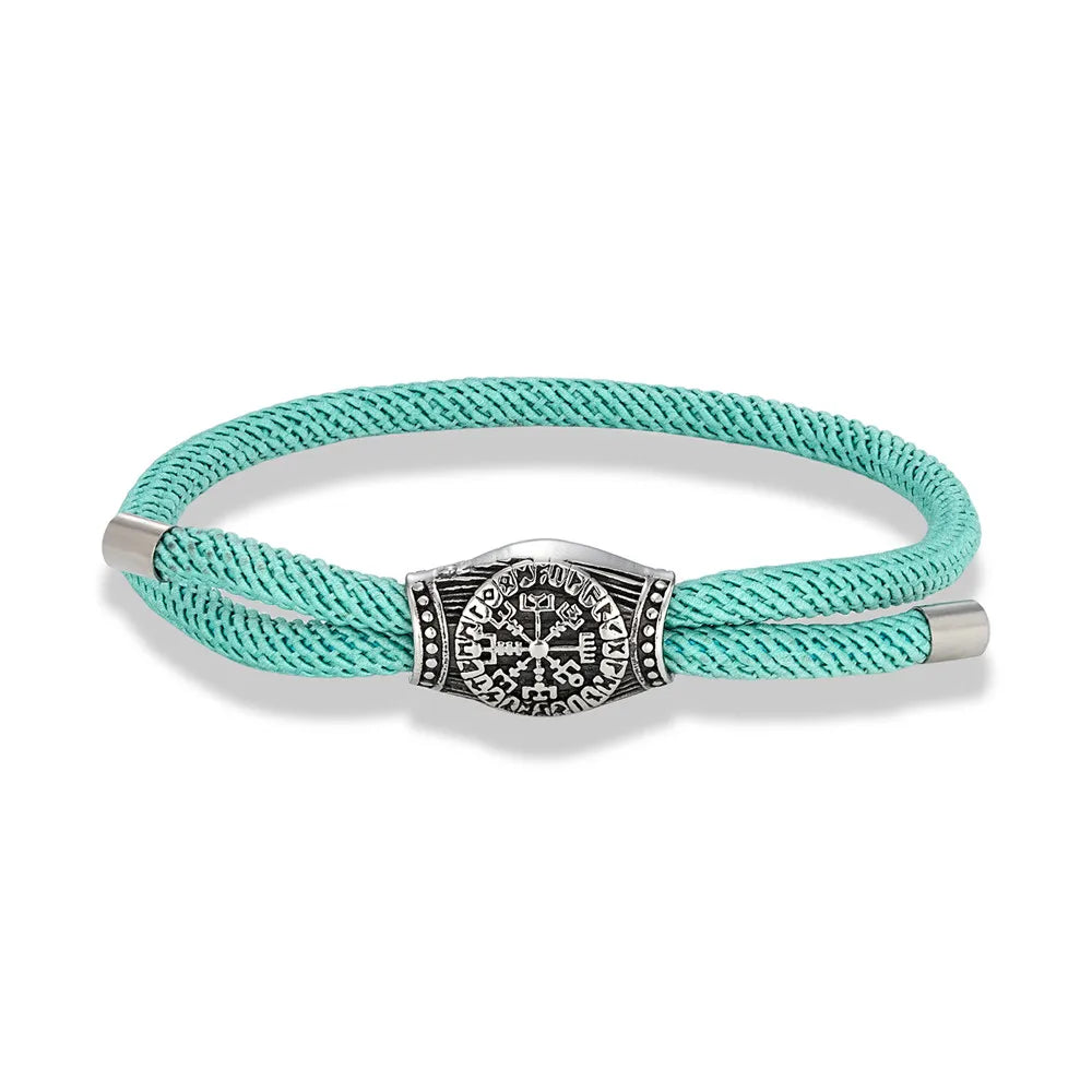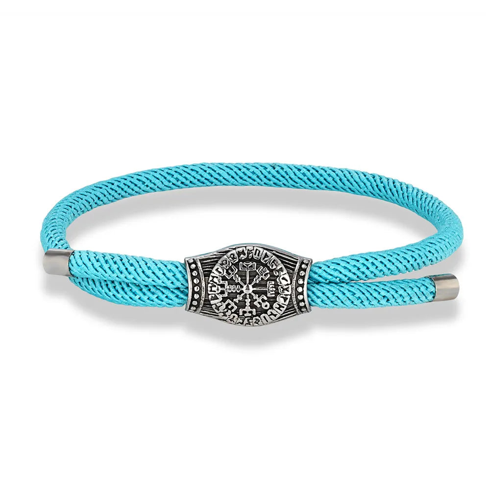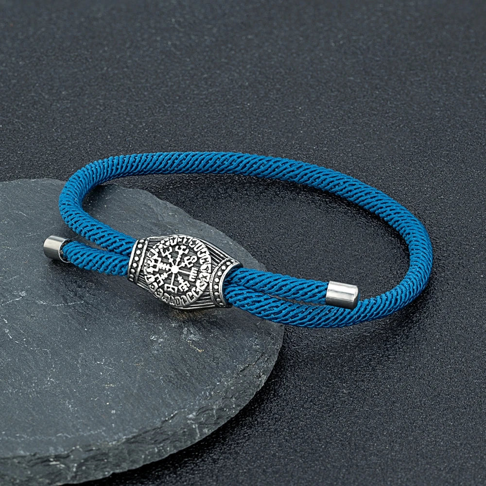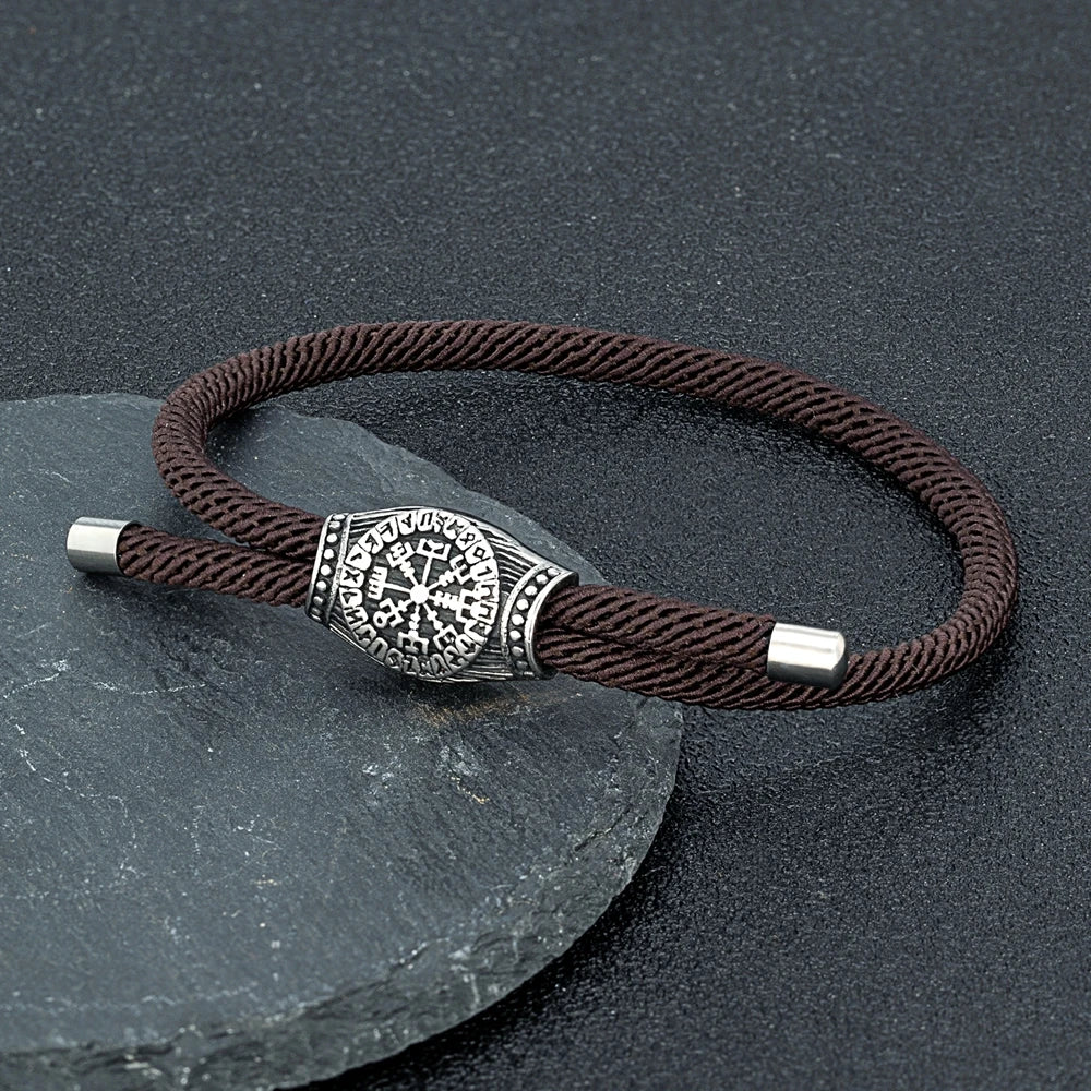 Punk Men Viking Compass Bracelet Handmade Rope Norse Runes Vegvisir