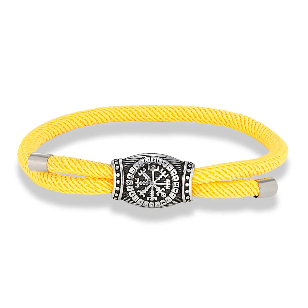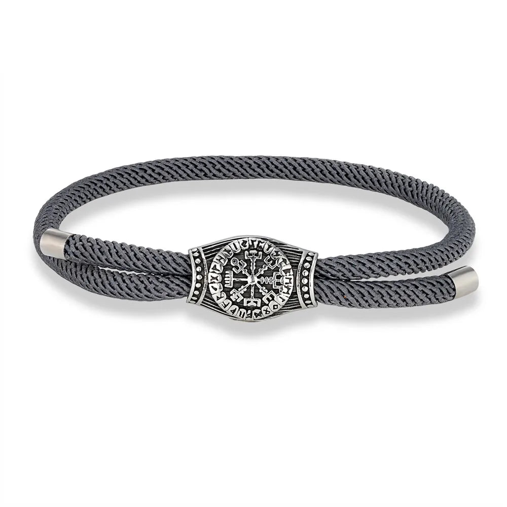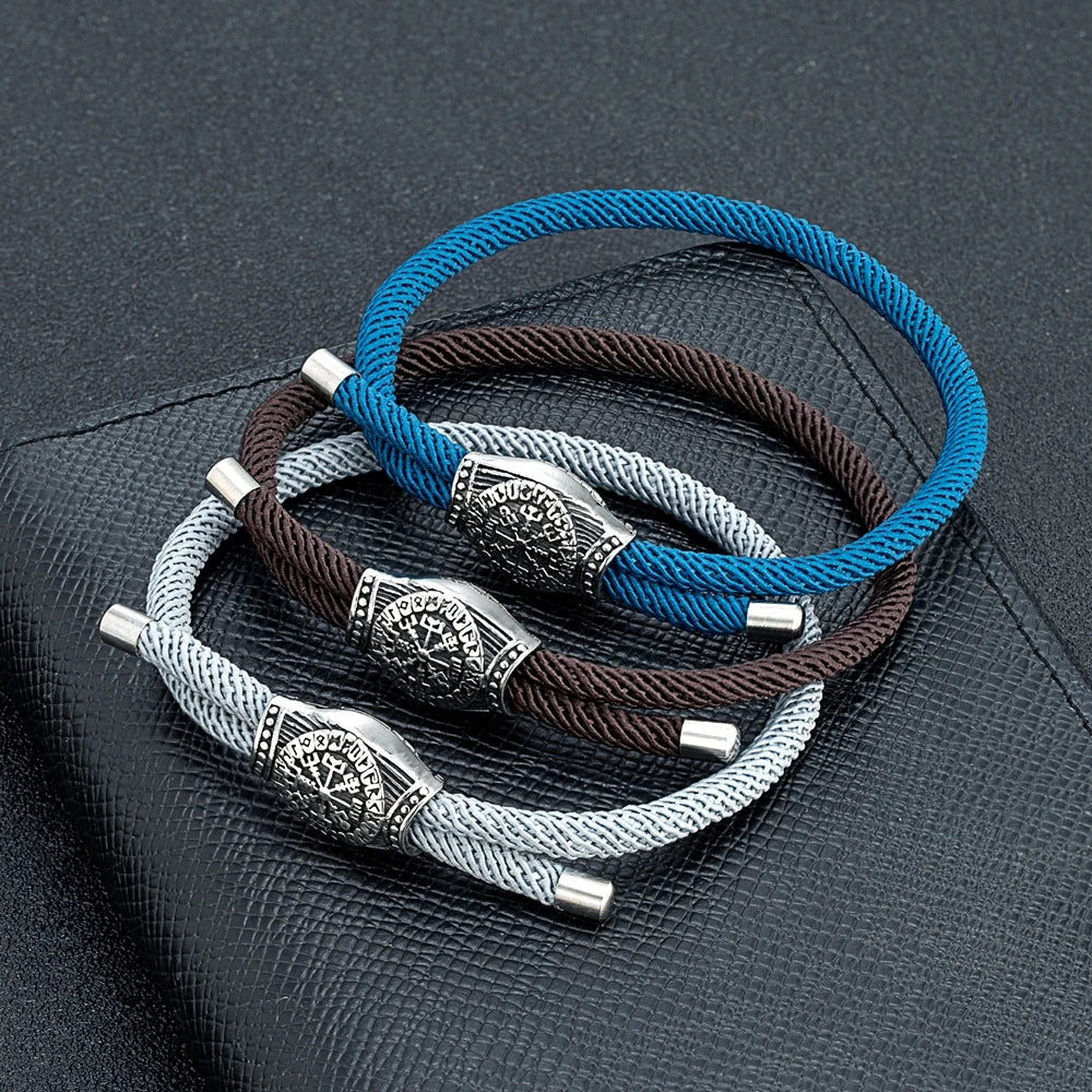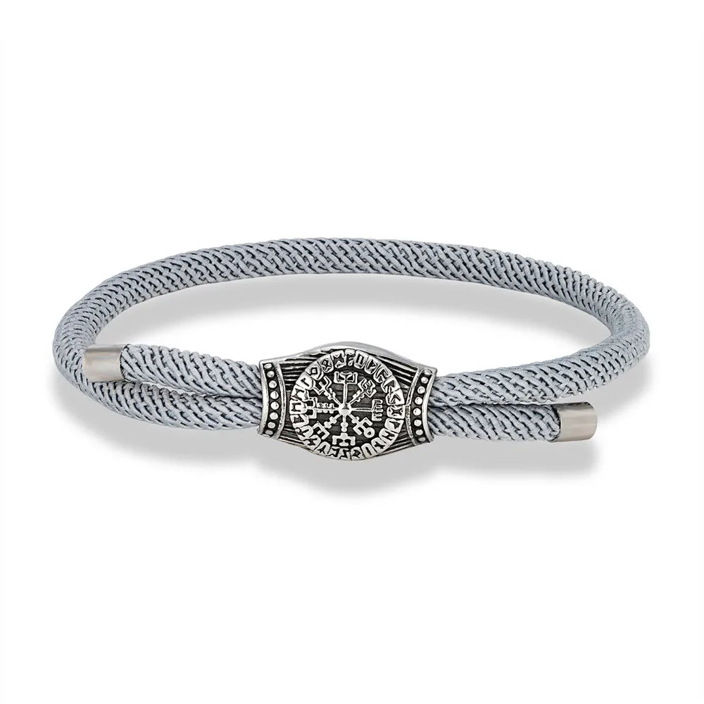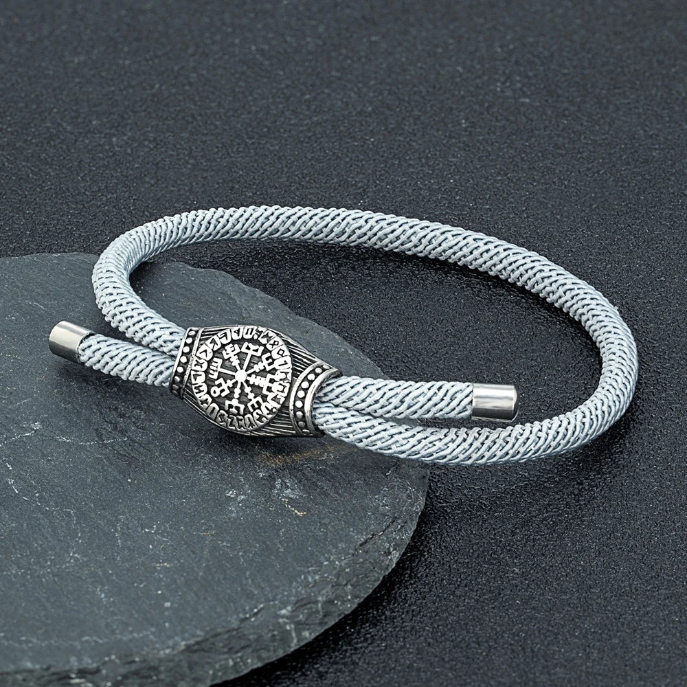 Punk Men Viking Compass Bracelet Handmade Rope Norse Runes Vegvisir