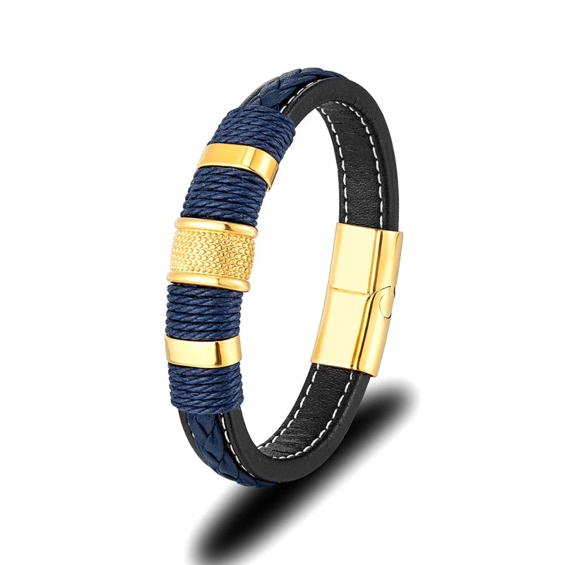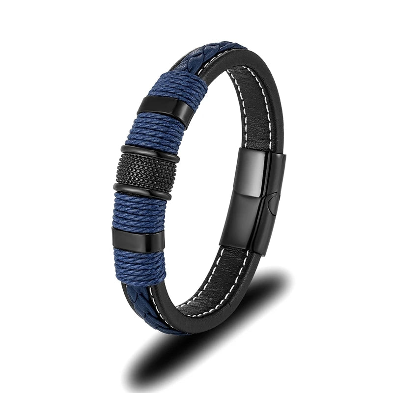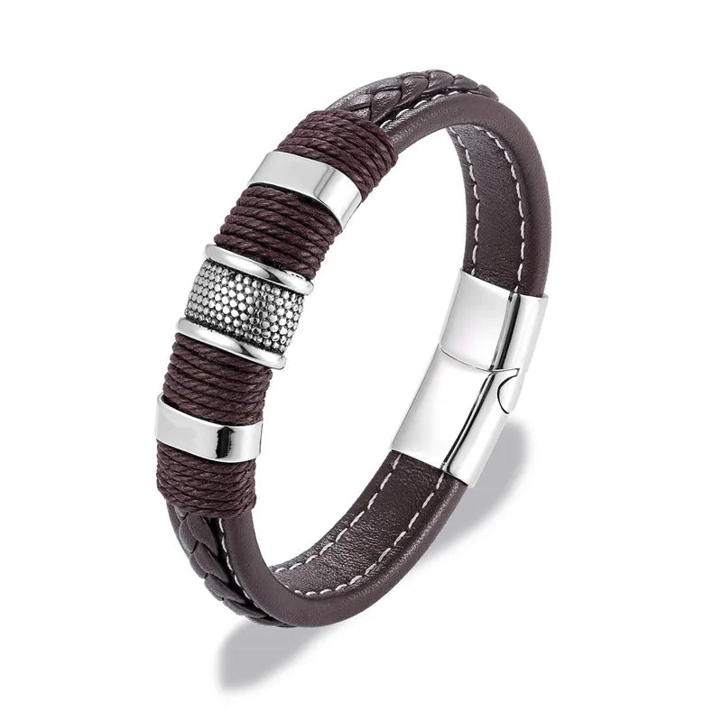 Punk Multilayer Braid Leather Magnetic Buck Men Bracelet