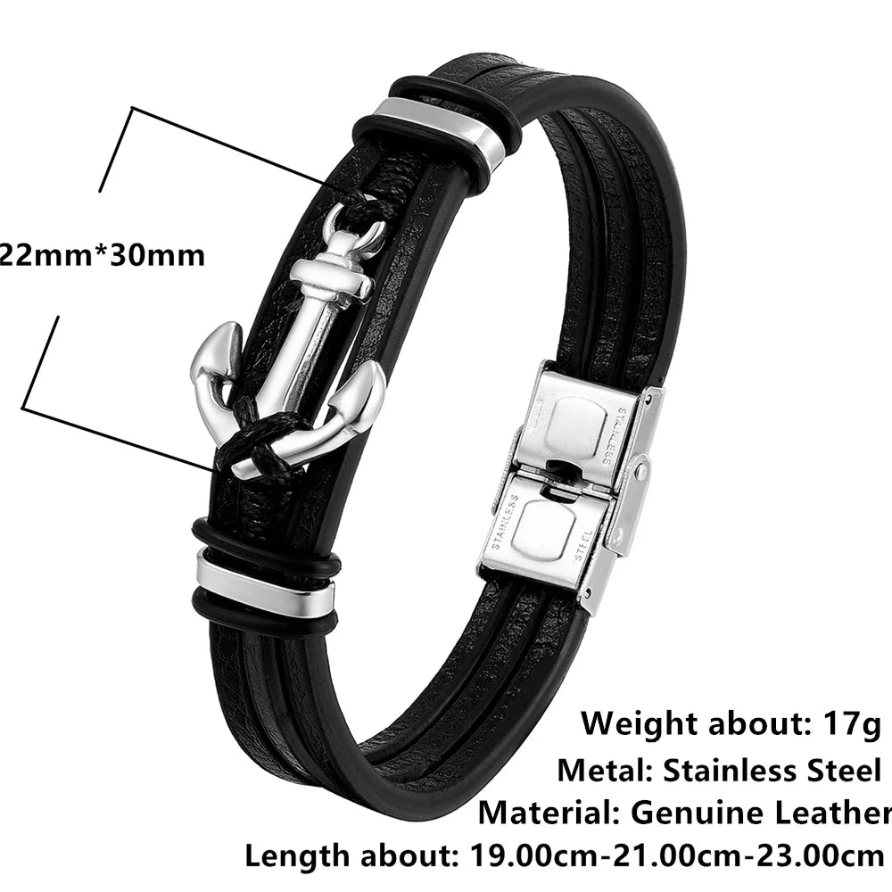 Punk Stainless Steel Anchor Bracelets Genuine Leather Mens Bracelet