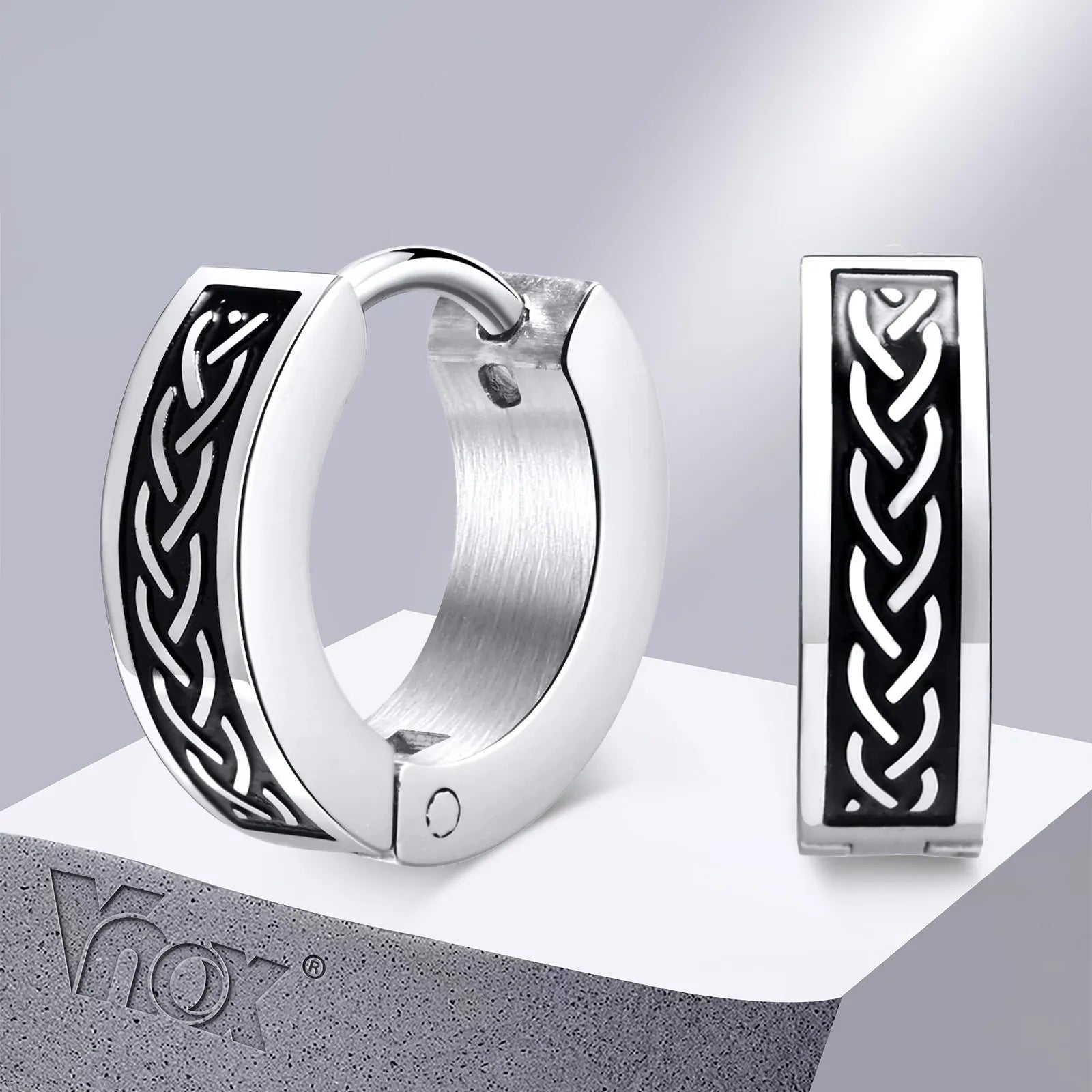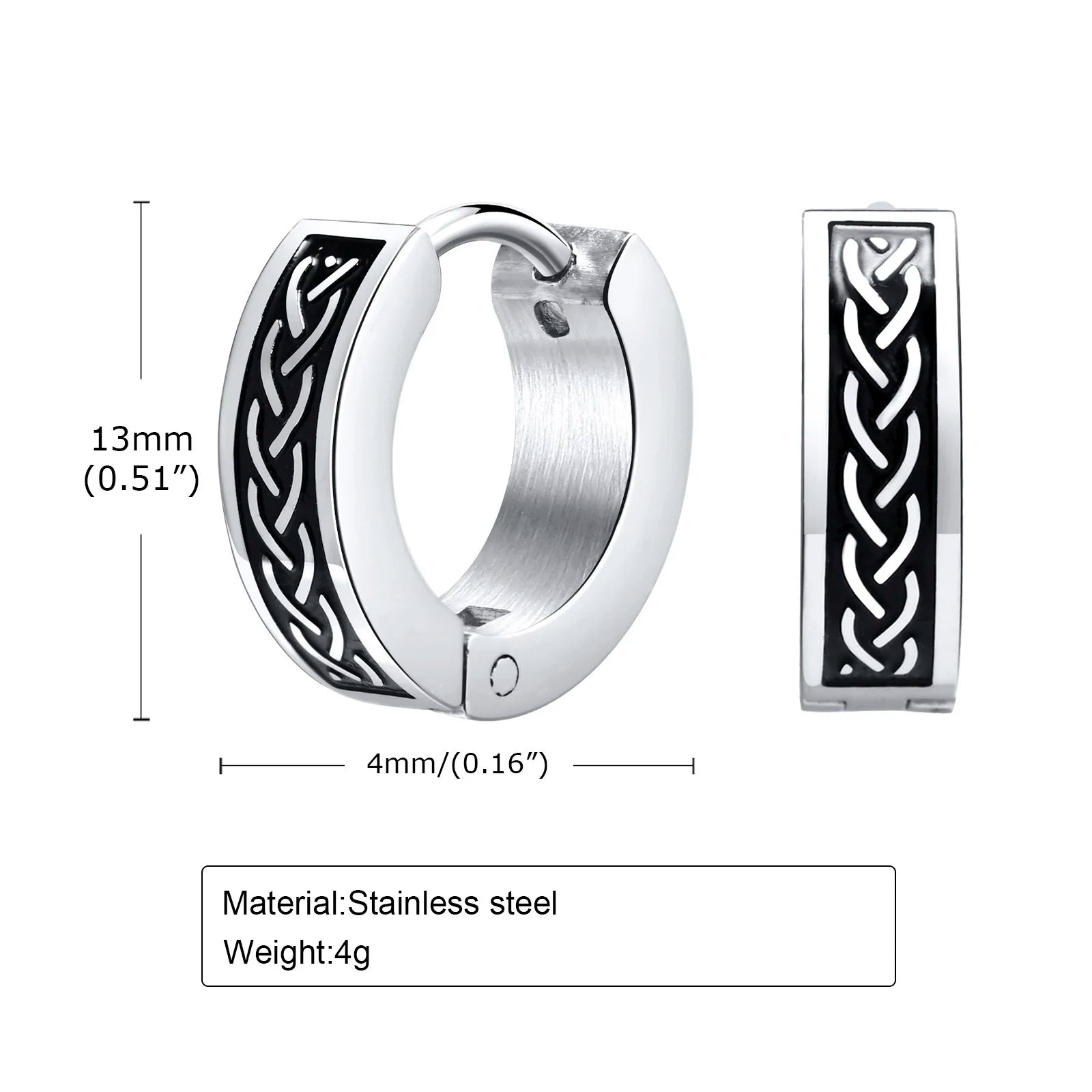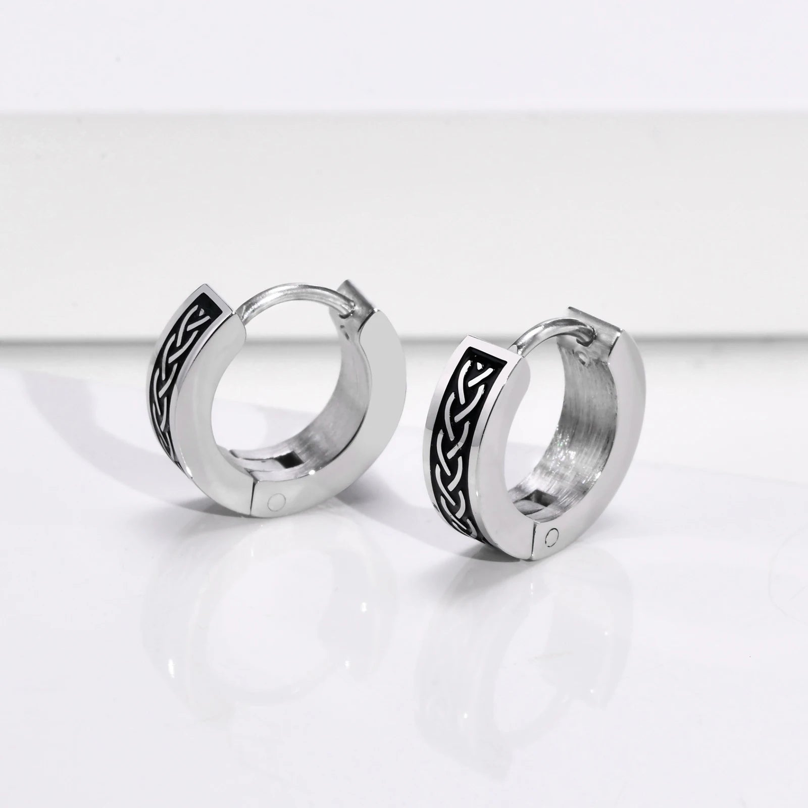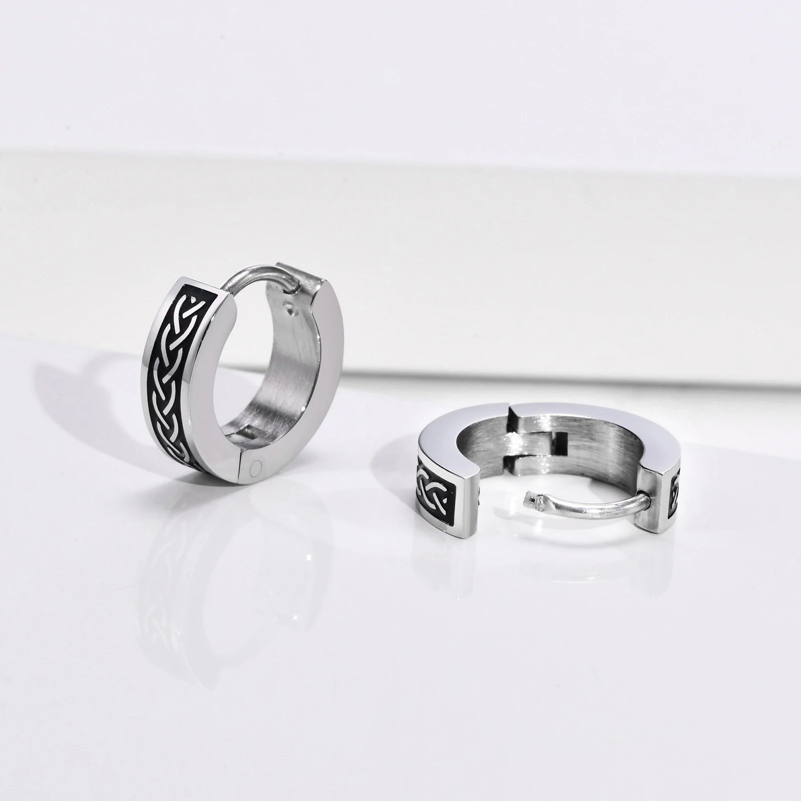 Retro Celtic Knot Earrings Mens Anti Allergy Hoop Huggie Earrings