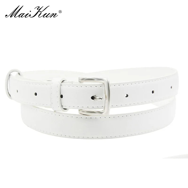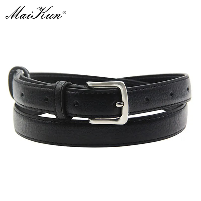 Slim Leather Belt with Pin Buckle Versatile Accessory for Women of All Ages