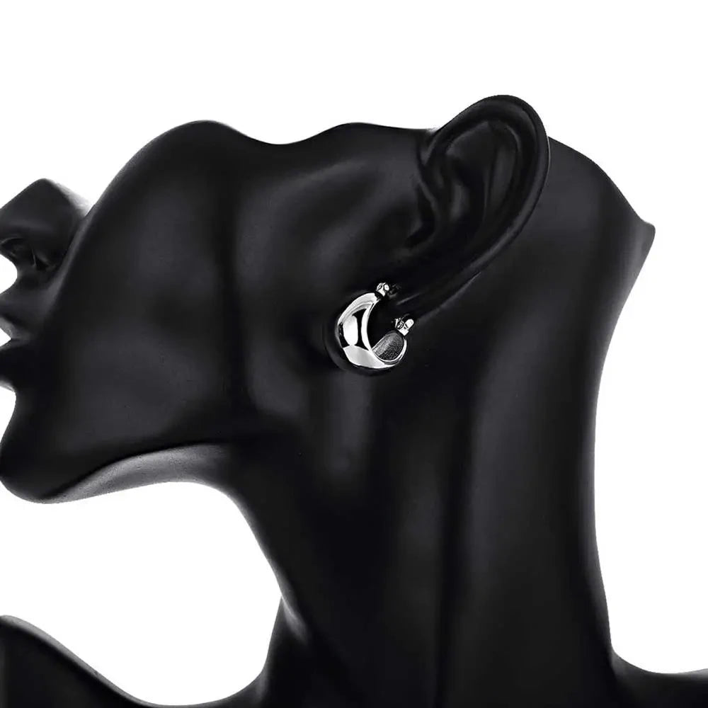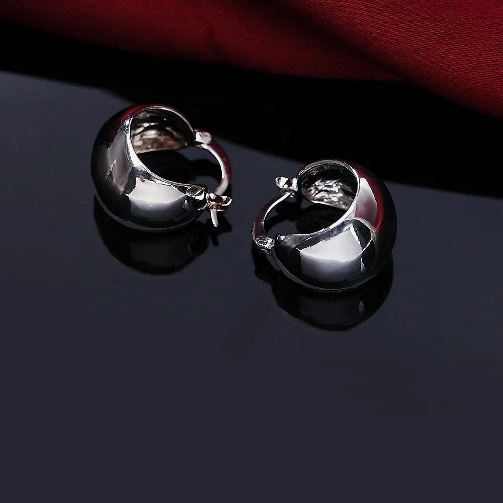Smooth Round 925 Sterling Silver Fashion Earrings for Women