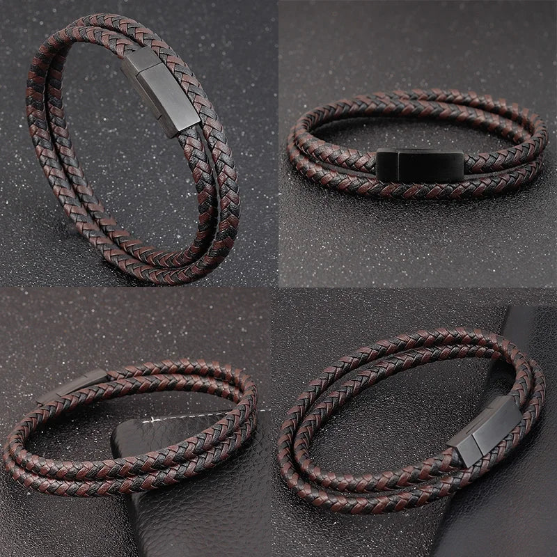 Special Luxury Style Leather Combination Splicing Mens Leather Bracelet