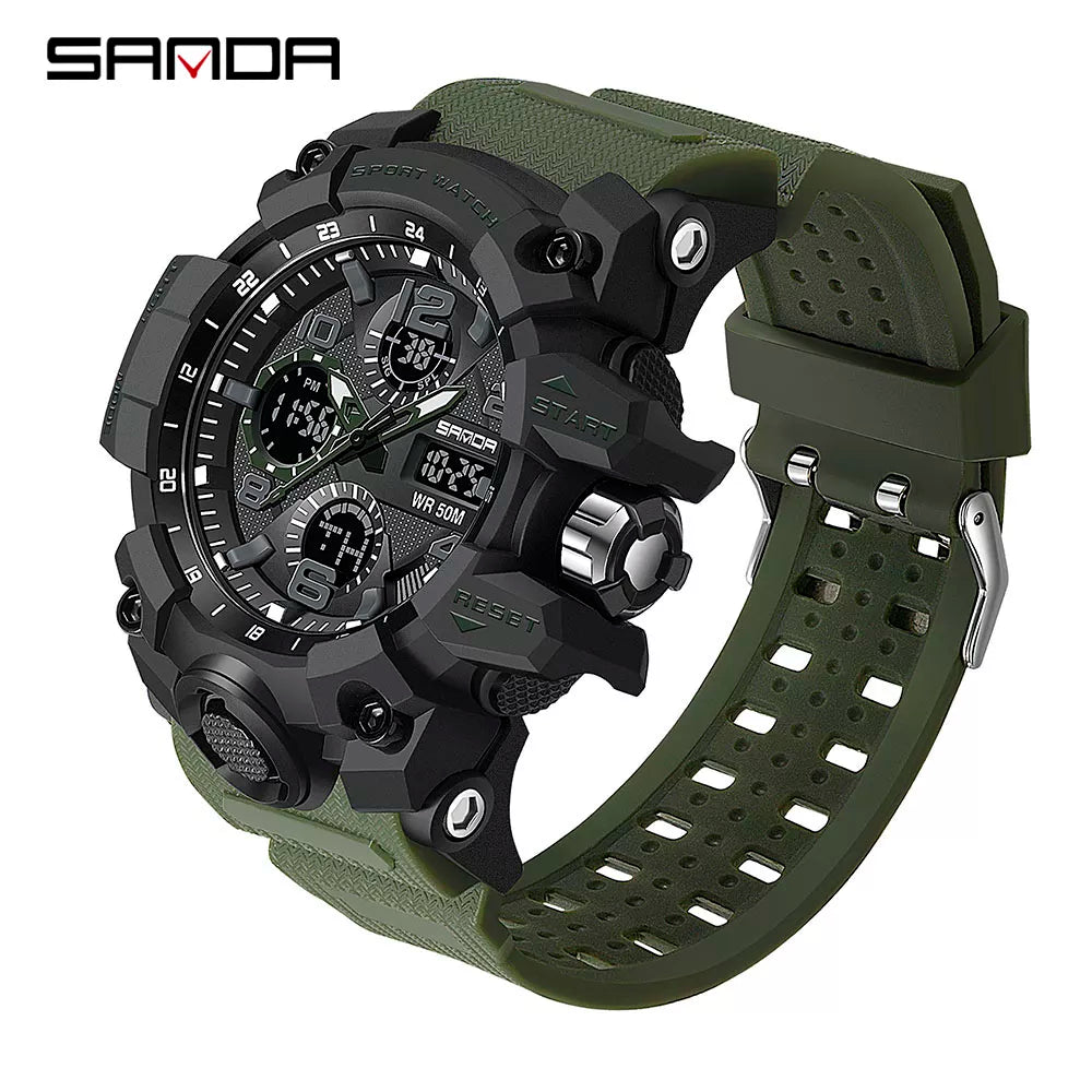 Sports Military Mens Watch Waterproof Dual Display Quartz