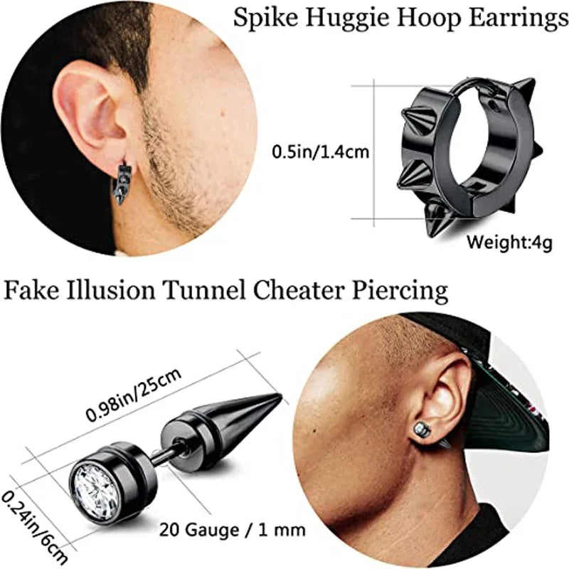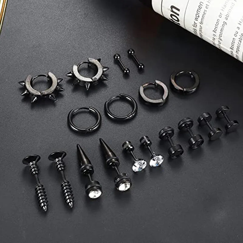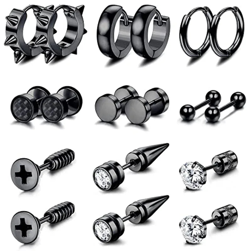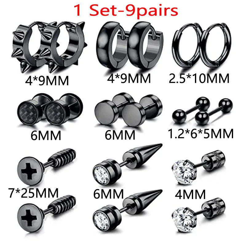 1-9 Pairs Black Stainless Steel Screw Stud Earrings For Men Women Piercing Small Huggie Hoop Earrings Set For Unisex