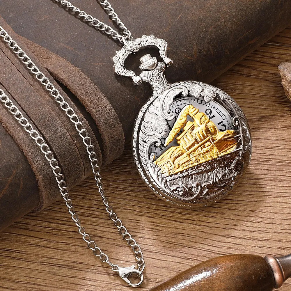 Steam Train Design Pocket Watch Chain Necklace