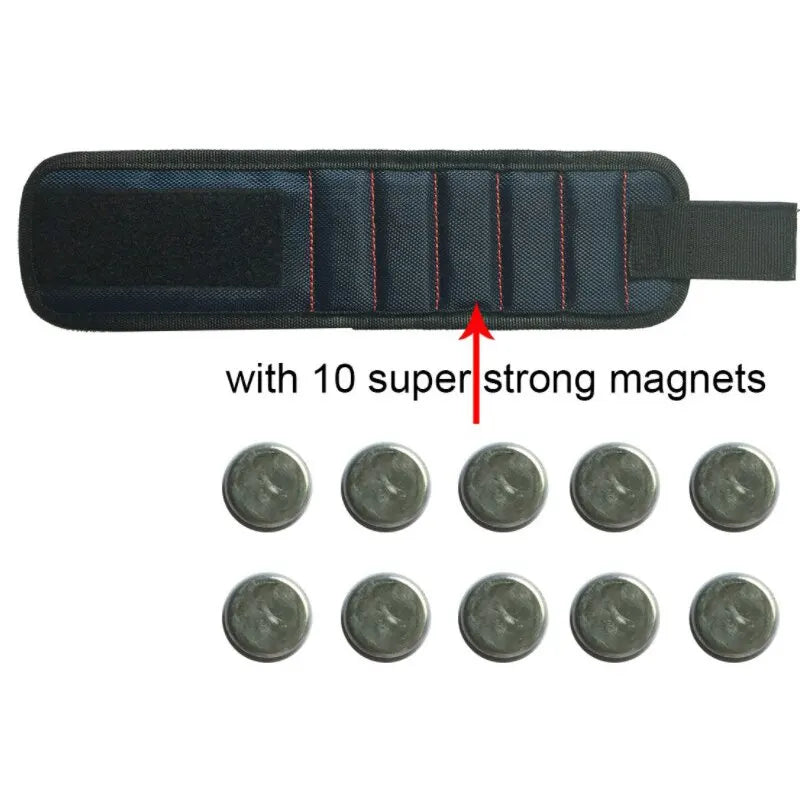 • Strong Magnetic Wristband :The strong magnetic wristband ensures that the tool bag stays securely in place, preventing it from falling off or getting lost.