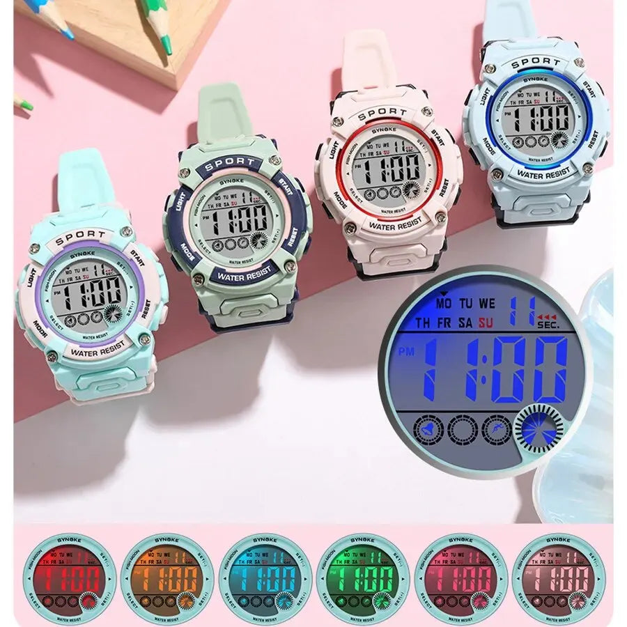 SYNOKE Student Digital Watch Waterproof Sports Children Watch Glow Multi function Kids Watch Seven Colors Light Gift