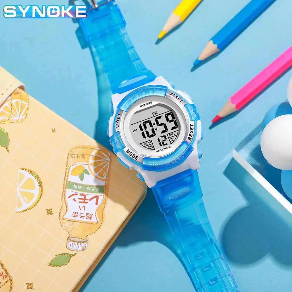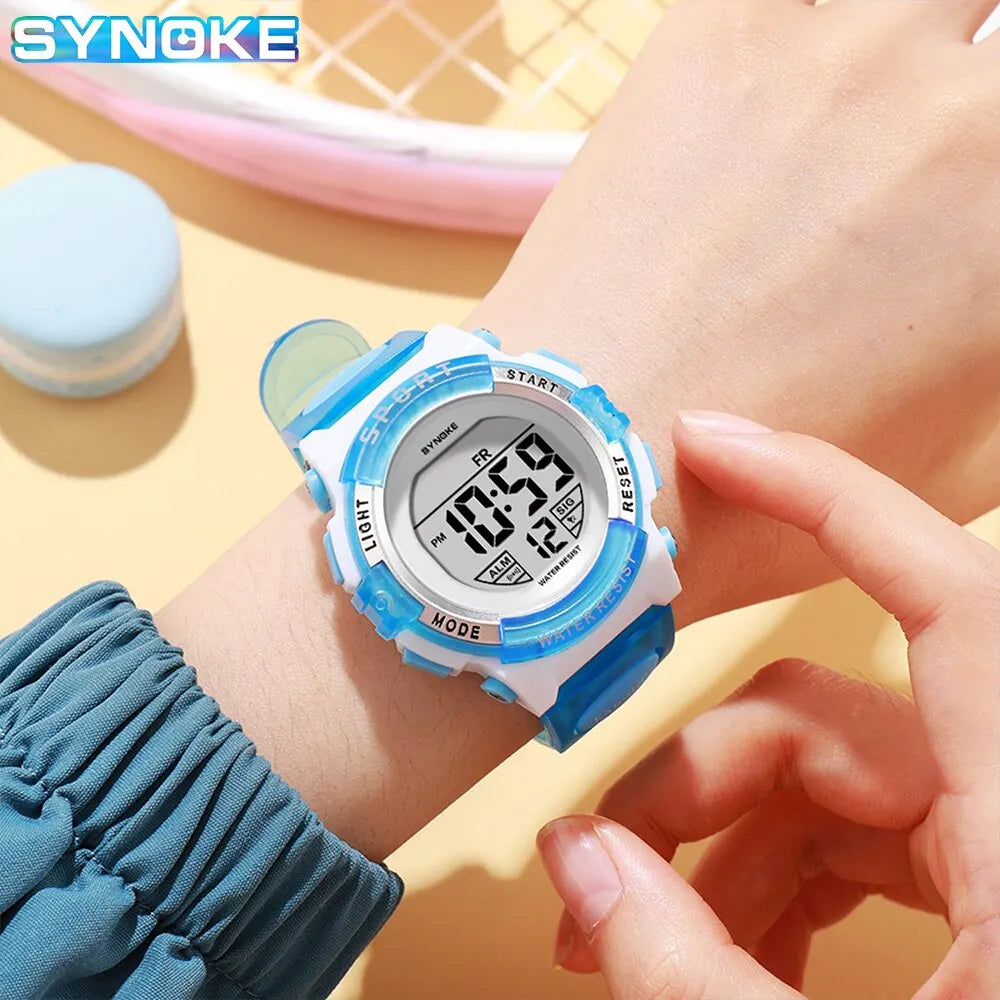 SYNOKE Student Digital Watch Waterproof Sports Children Watch Glow Multi function Kids Watch Seven Colors Light Gift